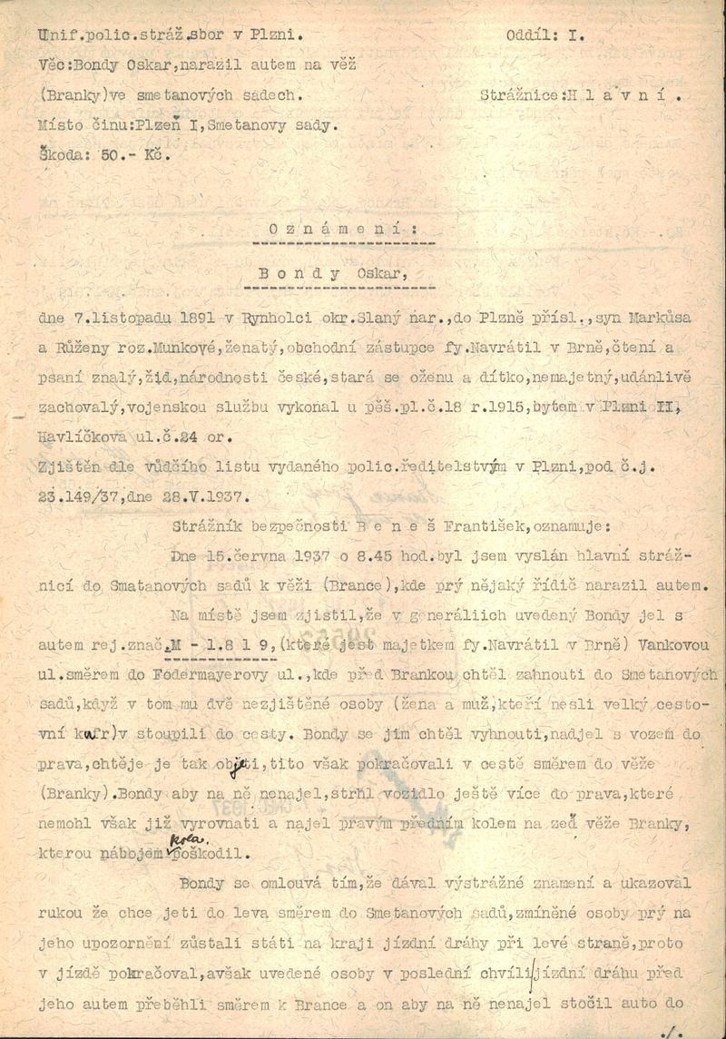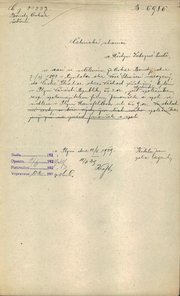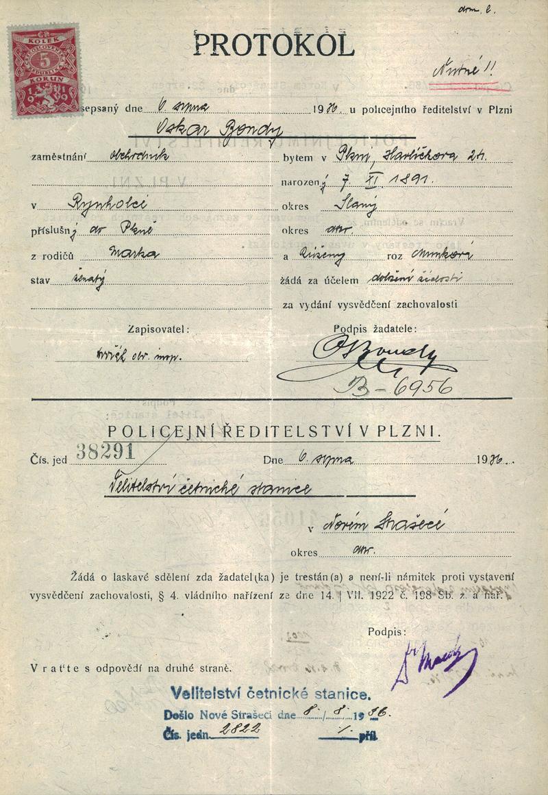 Státní oblastní archiv v Plzni > Policejní ředitelství Plzeň > 1918-1951 > B > Bondy Oskar