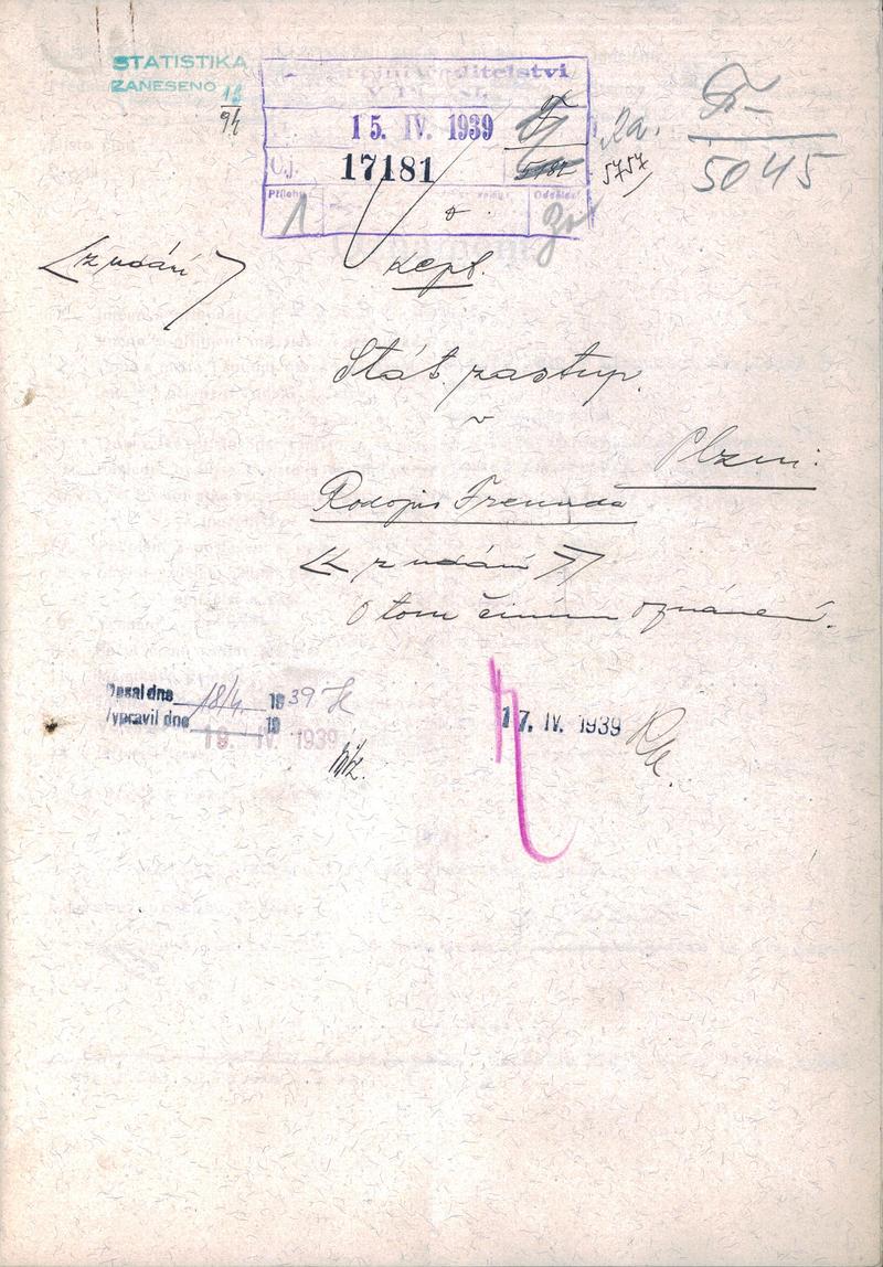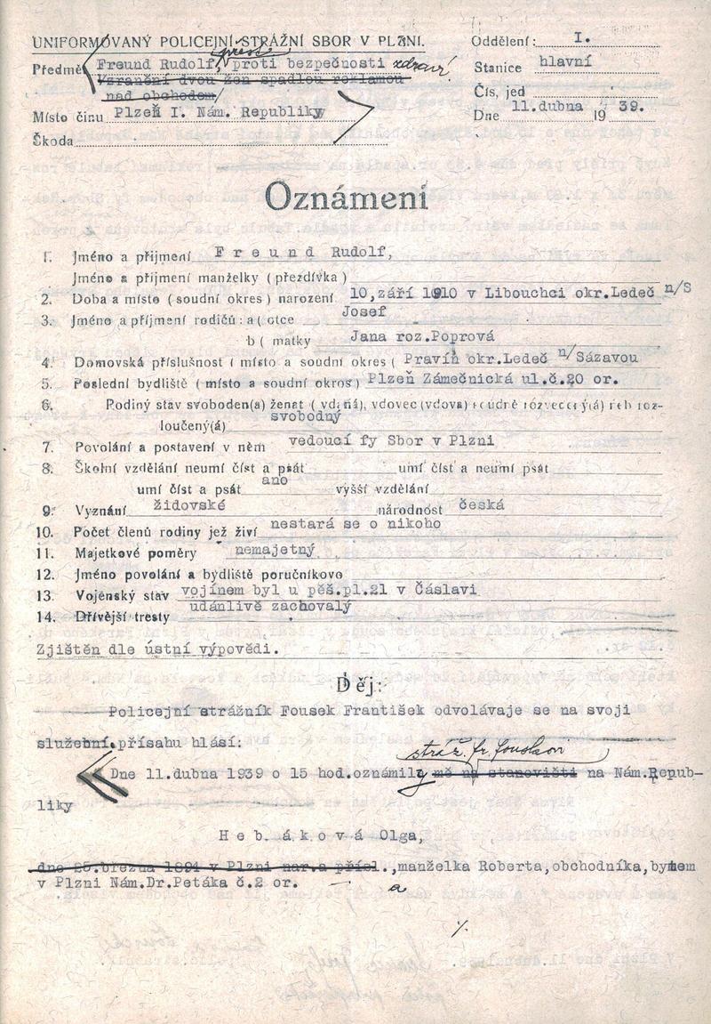 Státní oblastní archiv v Plzni > Policejní ředitelství Plzeň > 1918-1951 > F > Freund Rudolf