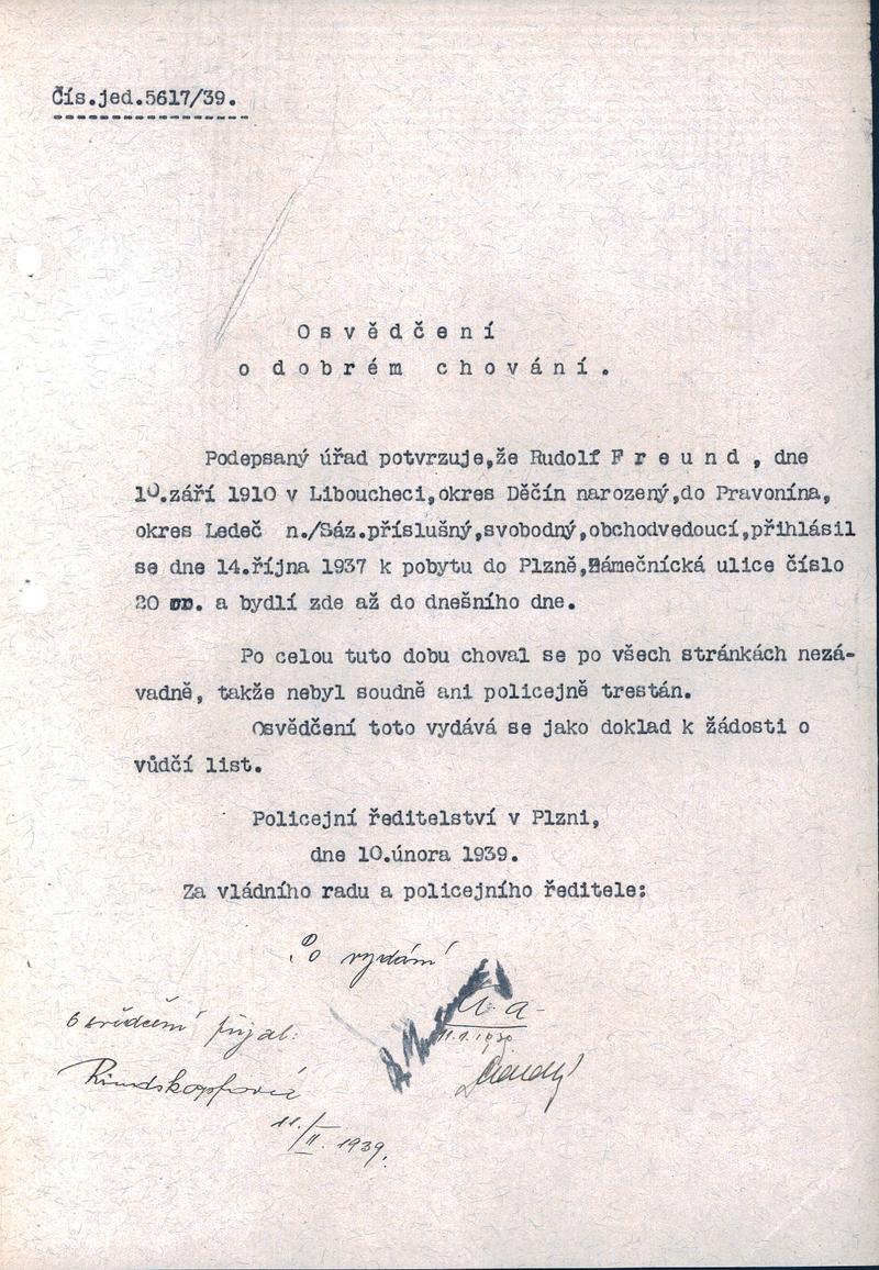 Státní oblastní archiv v Plzni > Policejní ředitelství Plzeň > 1918-1951 > F > Freund Rudolf