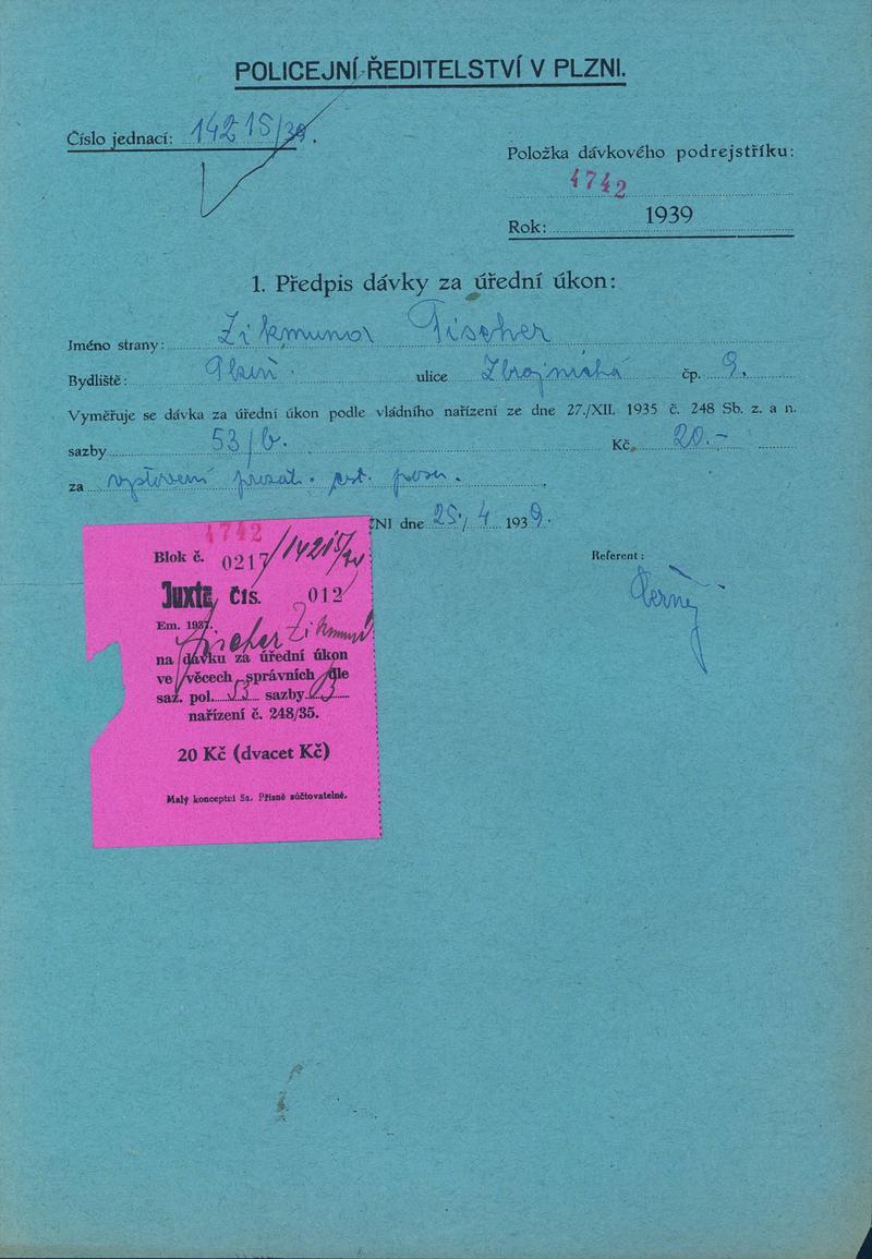 Státní oblastní archiv v Plzni > Policejní ředitelství Plzeň > 1918-1951 > F > Fischer Zikmund