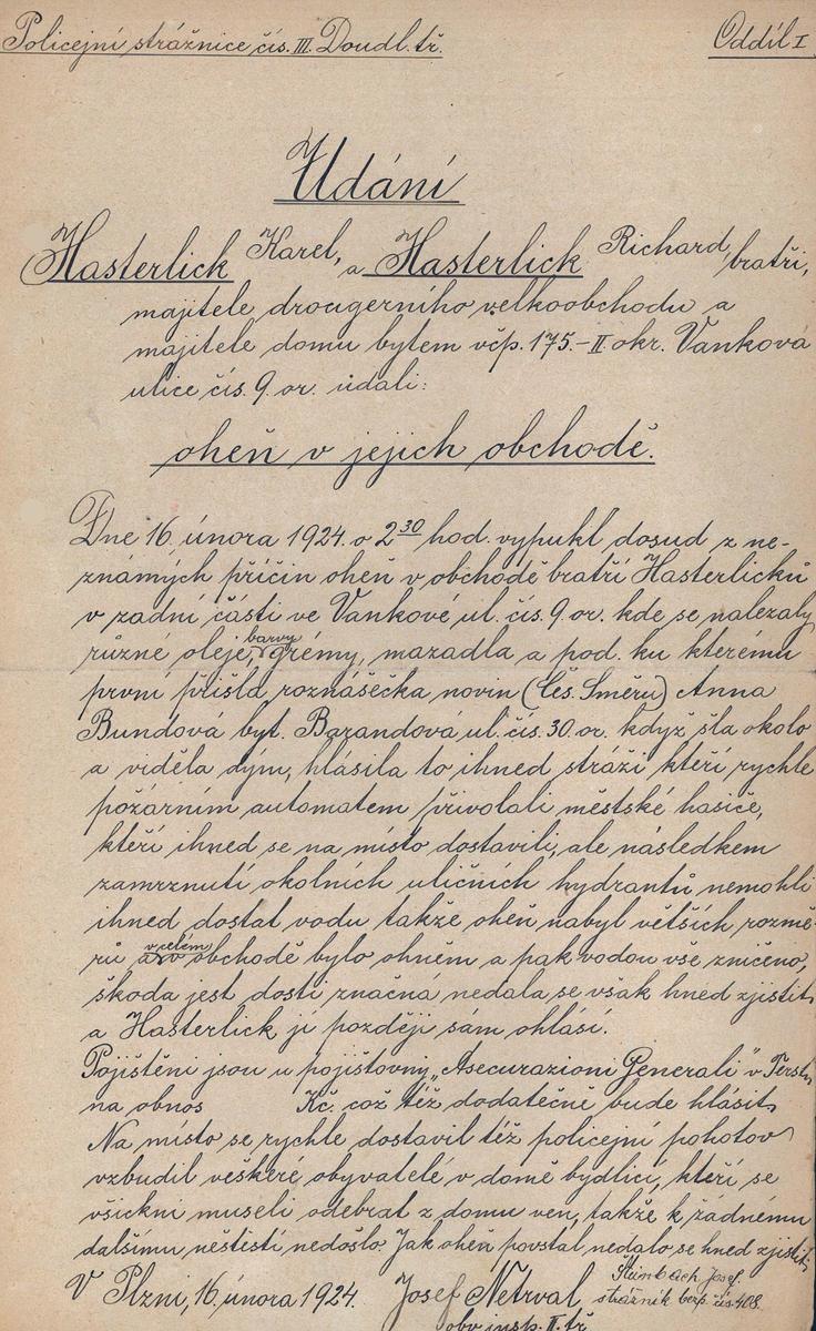 Státní oblastní archiv v Plzni > Policejní ředitelství Plzeň > 1918-1951 > H > Hasterlík Karel