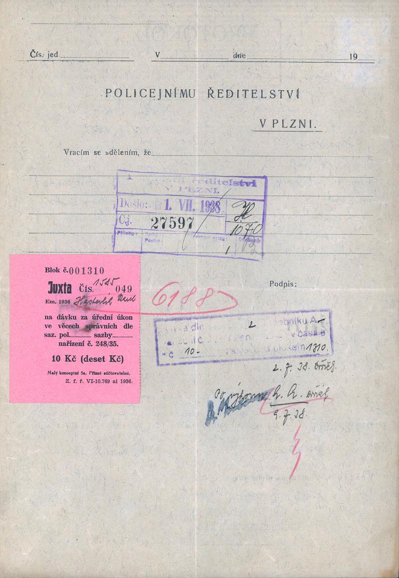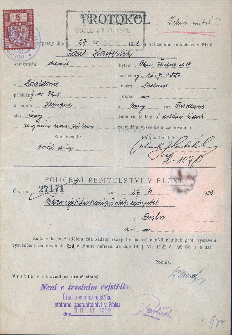 Státní oblastní archiv v Plzni > Policejní ředitelství Plzeň > 1918-1951 > H > Hasterlík Karel