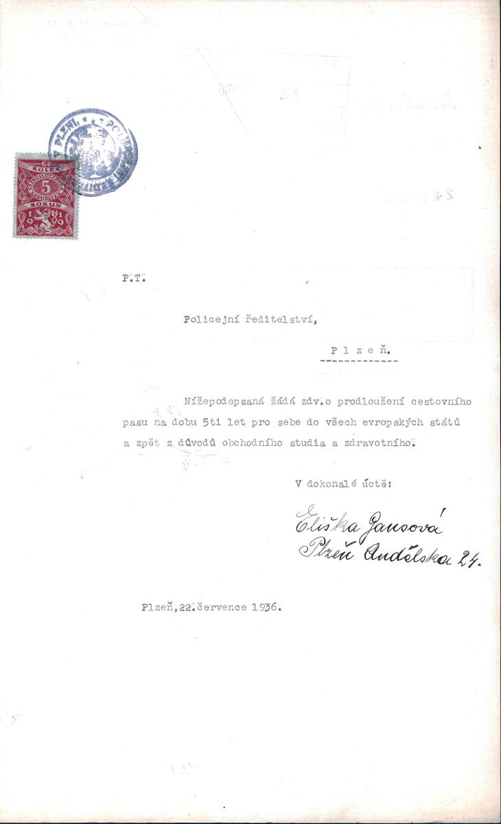 Státní oblastní archiv v Plzni > Policejní ředitelství Plzeň > 1918-1951 > G > Gansová Eliška