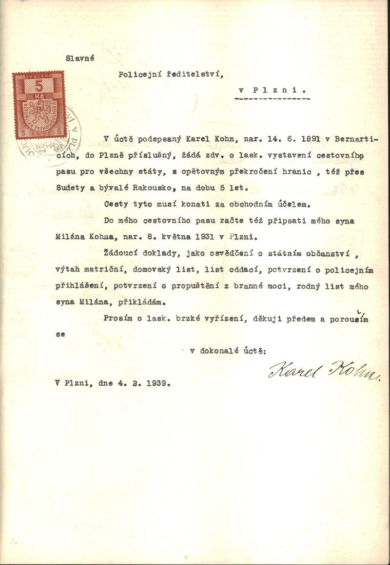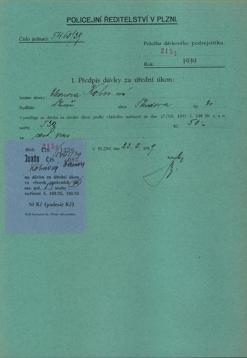 Státní oblastní archiv v Plzni > Policejní ředitelství Plzeň > 1918-1951 > K > Kohn Karel