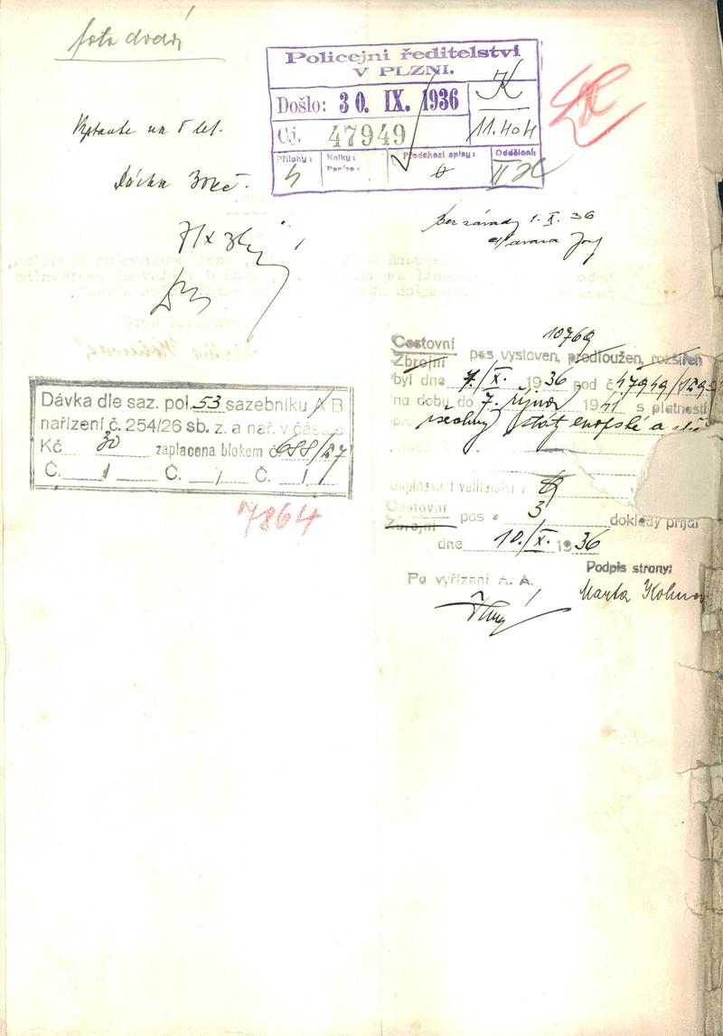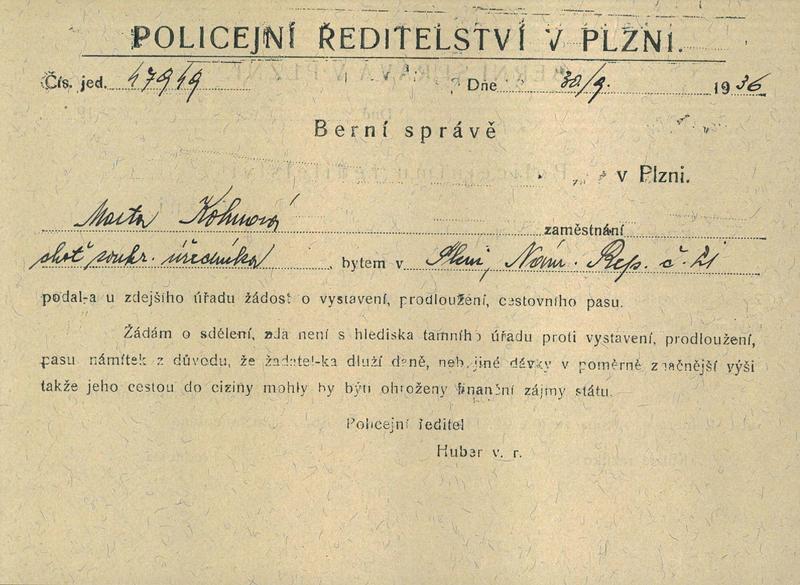 Státní oblastní archiv v Plzni > Policejní ředitelství Plzeň > 1918-1951 > K > Kohnová Marta