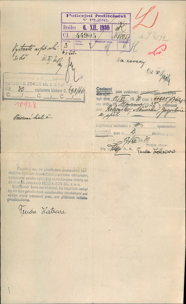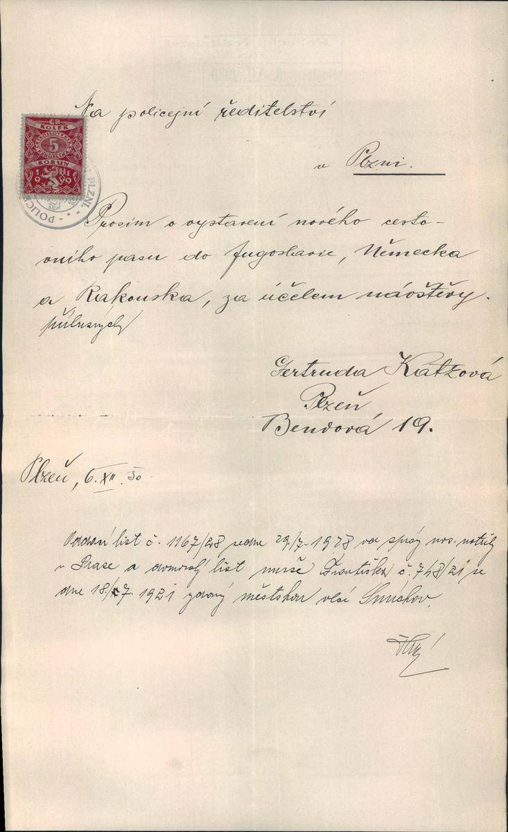 Státní oblastní archiv v Plzni > Policejní ředitelství Plzeň > 1918-1951 > K > Katzová Gertruda