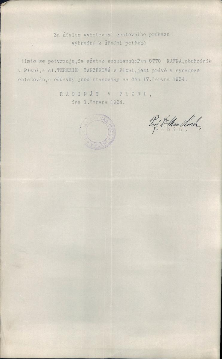 Pro publikaci je nutné kontaktovat Státní oblastní archiv v Plzni, kde je uložen originál dokumentu. Dokument byl digitalizován Institutem Terezínské iniciativy v rámci projektu Terezínské album.