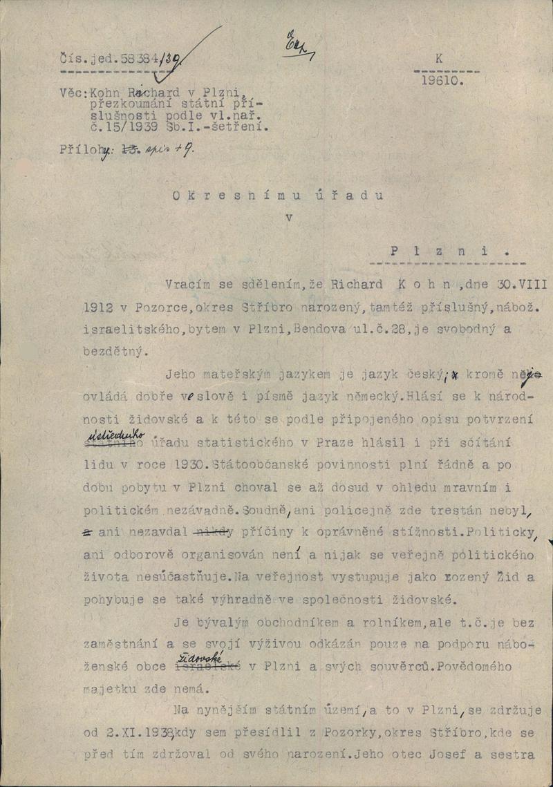 Státní oblastní archiv v Plzni > Policejní ředitelství Plzeň > 1918-1951 > K > Kohn Richard