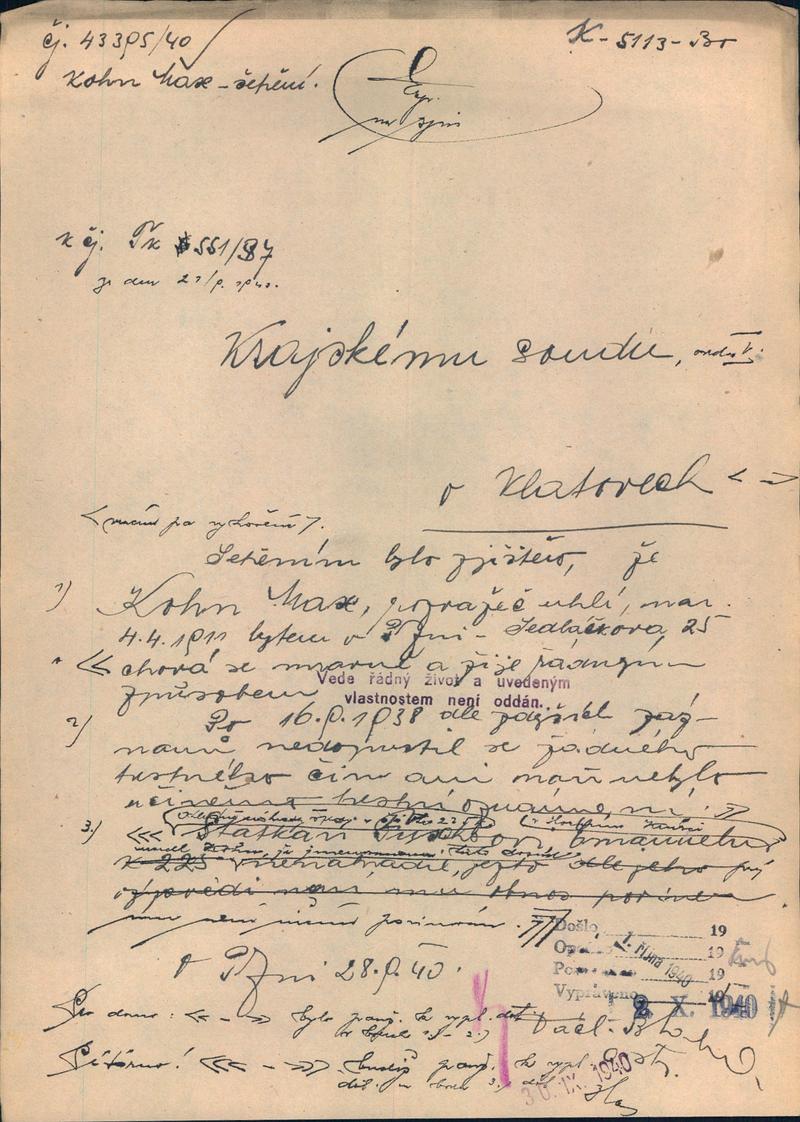 Státní oblastní archiv v Plzni > Policejní ředitelství Plzeň > 1918-1951 > K > Kohn Max