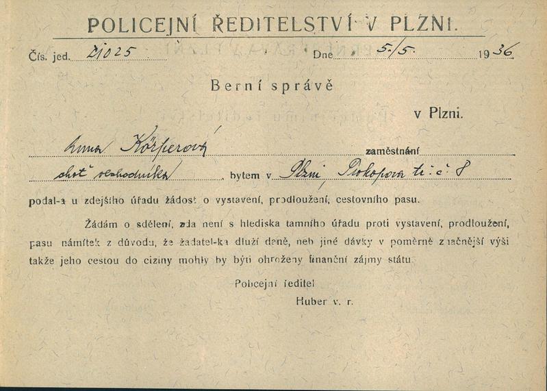Státní oblastní archiv v Plzni > Policejní ředitelství Plzeň > 1918-1951 > K > Körperová Anna