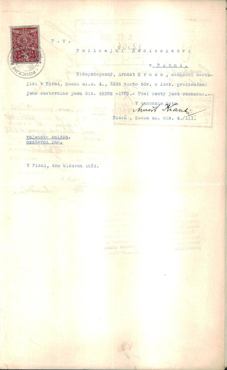 Státní oblastní archiv v Plzni > Policejní ředitelství Plzeň > 1918-1951 > K > Kraus Arnošt