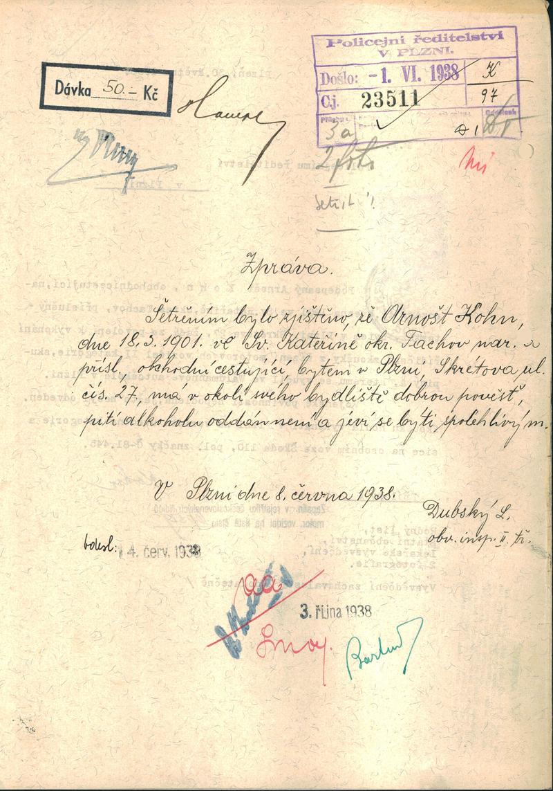 Státní oblastní archiv v Plzni > Policejní ředitelství Plzeň > 1918-1951 > K > Kohn Arnošt