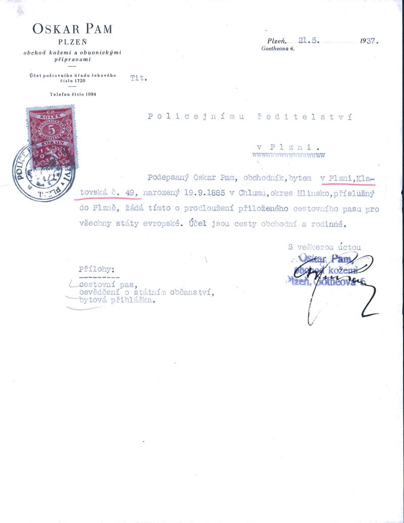 Státní oblastní archiv v Plzni > Policejní ředitelství Plzeň > 1918-1951 > P > Pam Oskar