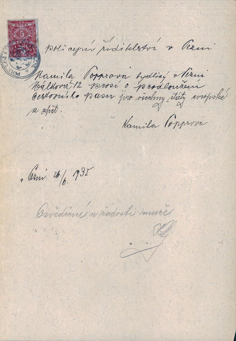 Státní oblastní archiv v Plzni > Policejní ředitelství Plzeň > 1918-1951 > P > Popperová Kamila