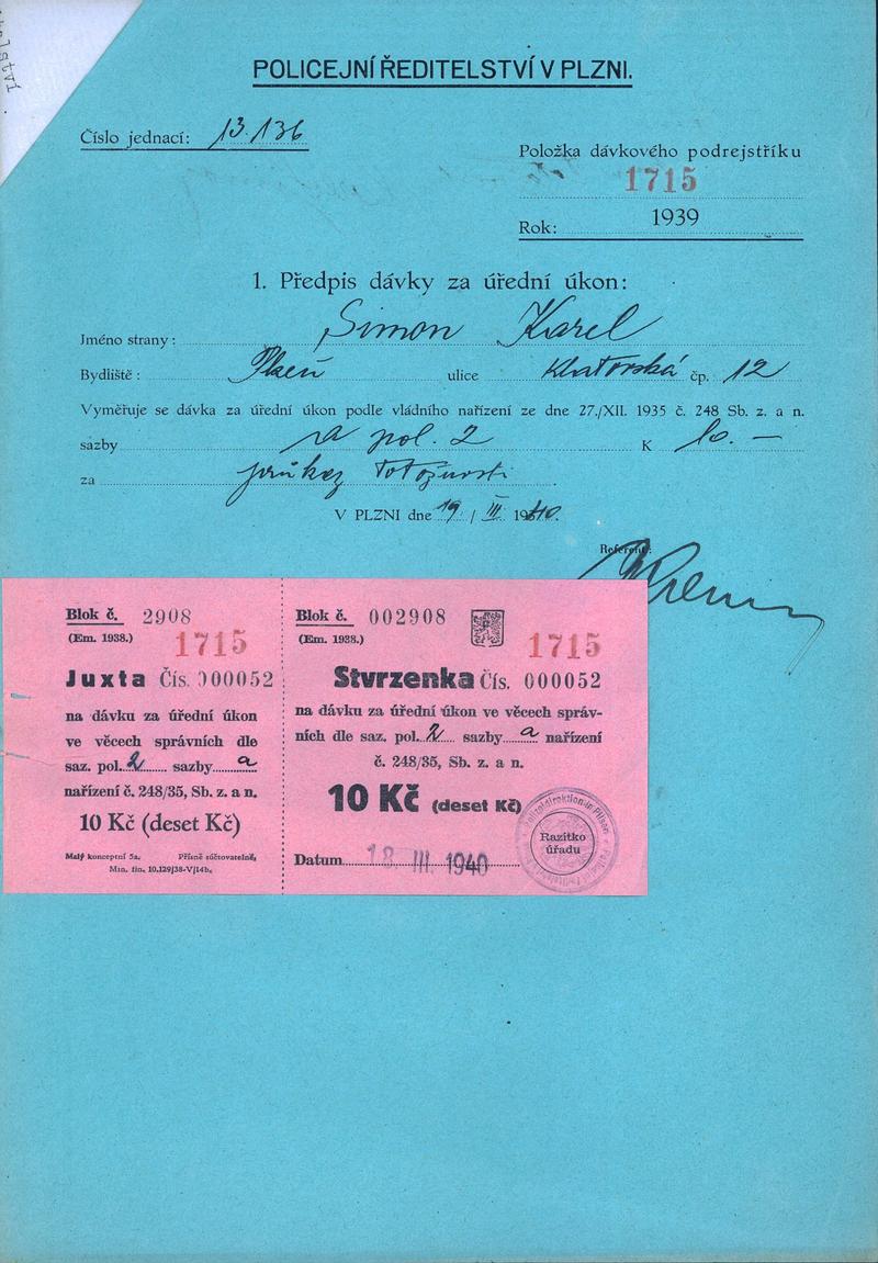 Státní oblastní archiv v Plzni > Policejní ředitelství Plzeň > 1918-1951 > S > Simon Karel