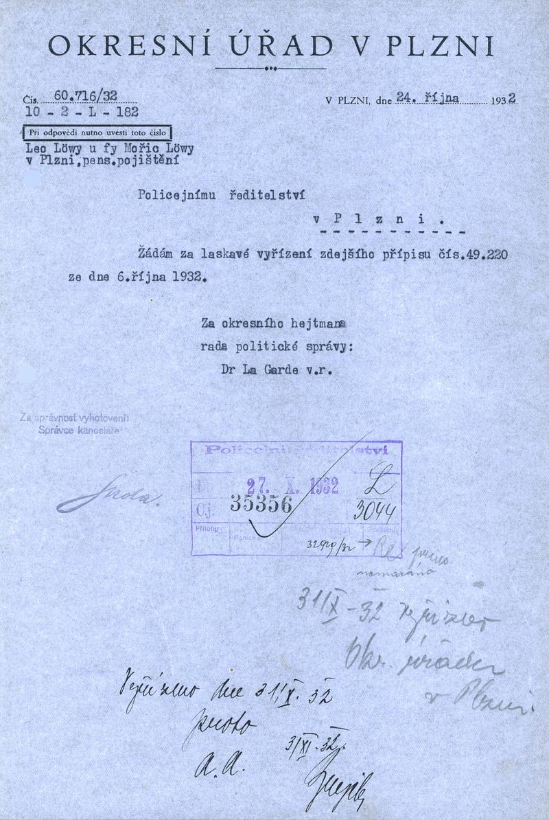 Státní oblastní archiv v Plzni > Policejní ředitelství Plzeň > 1918-1951 > L > Löwy Leo