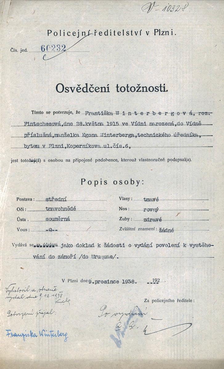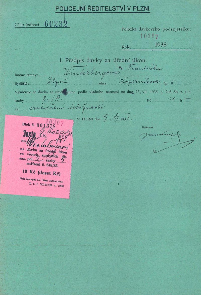 Státní oblastní archiv v Plzni > Policejní ředitelství Plzeň > 1918-1951 > V > Winterbergová Františka
