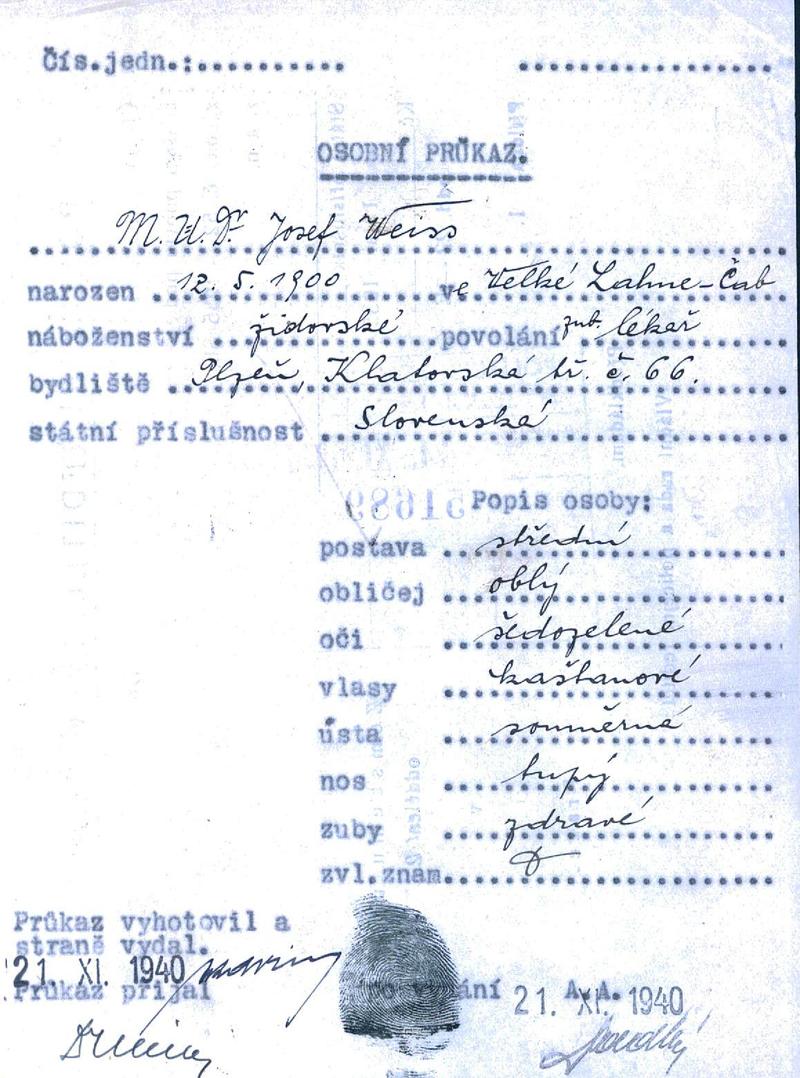 Státní oblastní archiv v Plzni > Policejní ředitelství Plzeň > 1918-1951 > V > Weiss Josef
