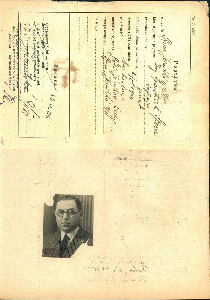 Moravský zemský archiv Brno > Policejní ředitelství Brno > Žádosti židovských občanů určených k transportu o občanské legitimace > Stern František