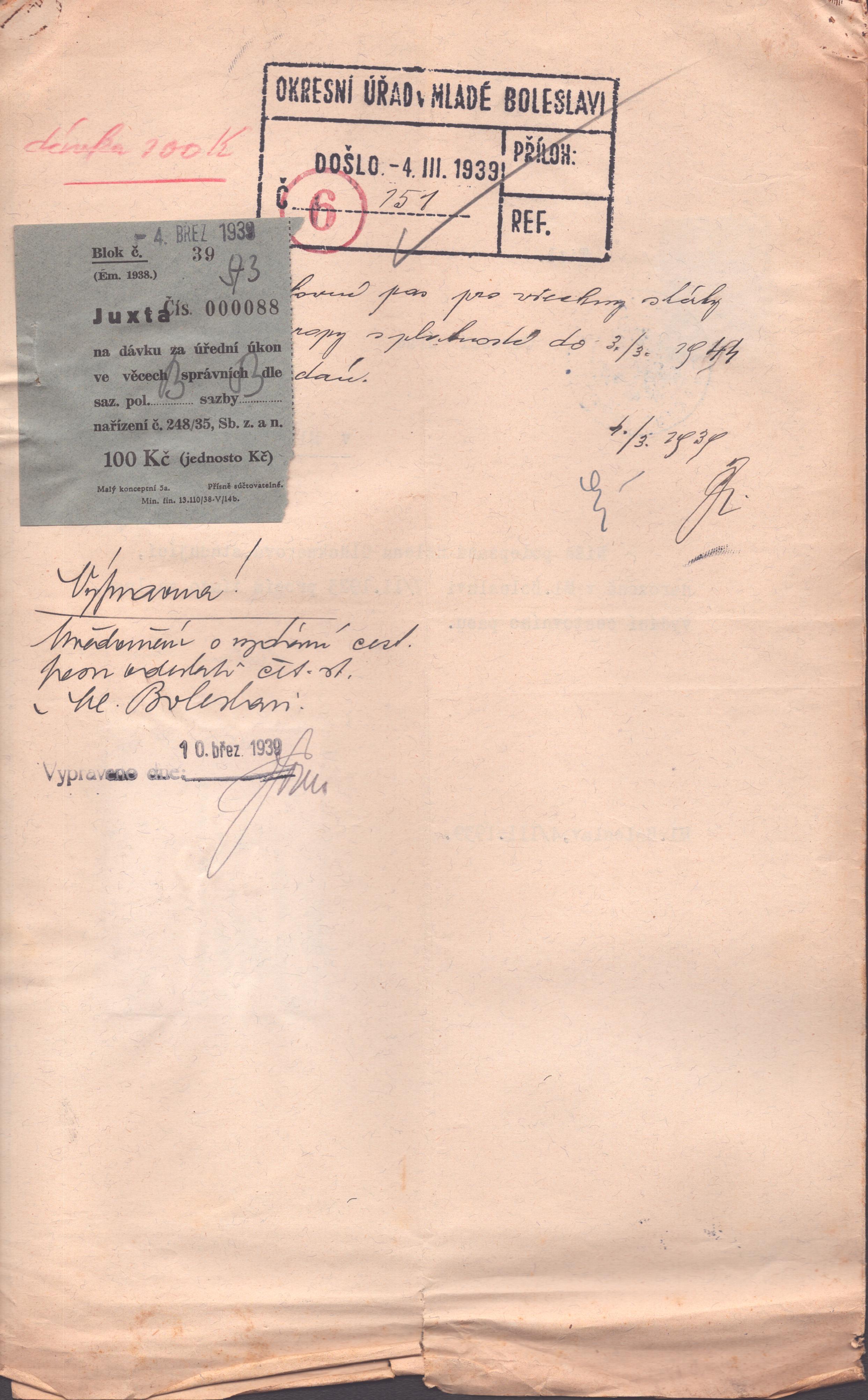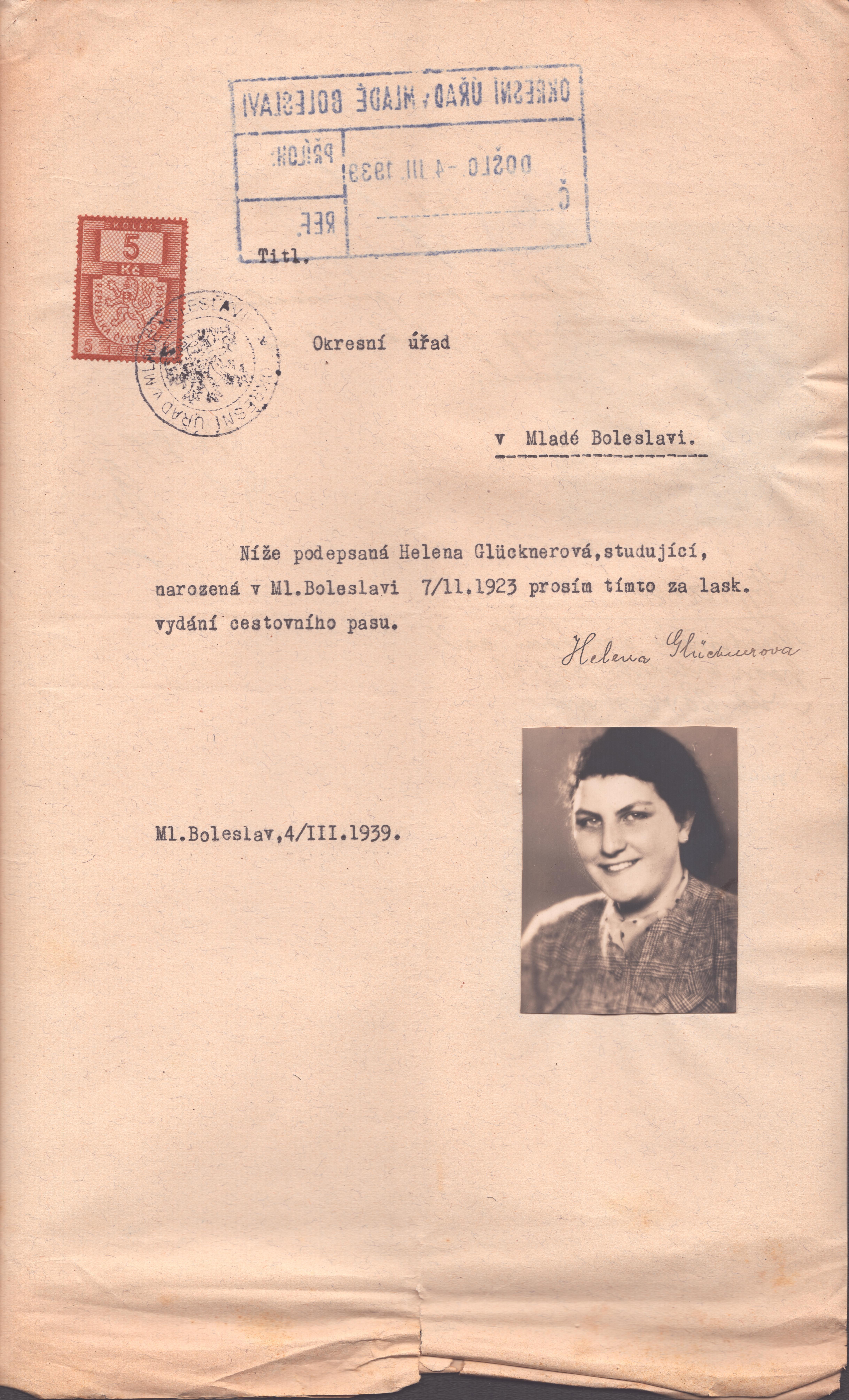 Glücknerová Helena: Žádost o vystavení cestovního pasu