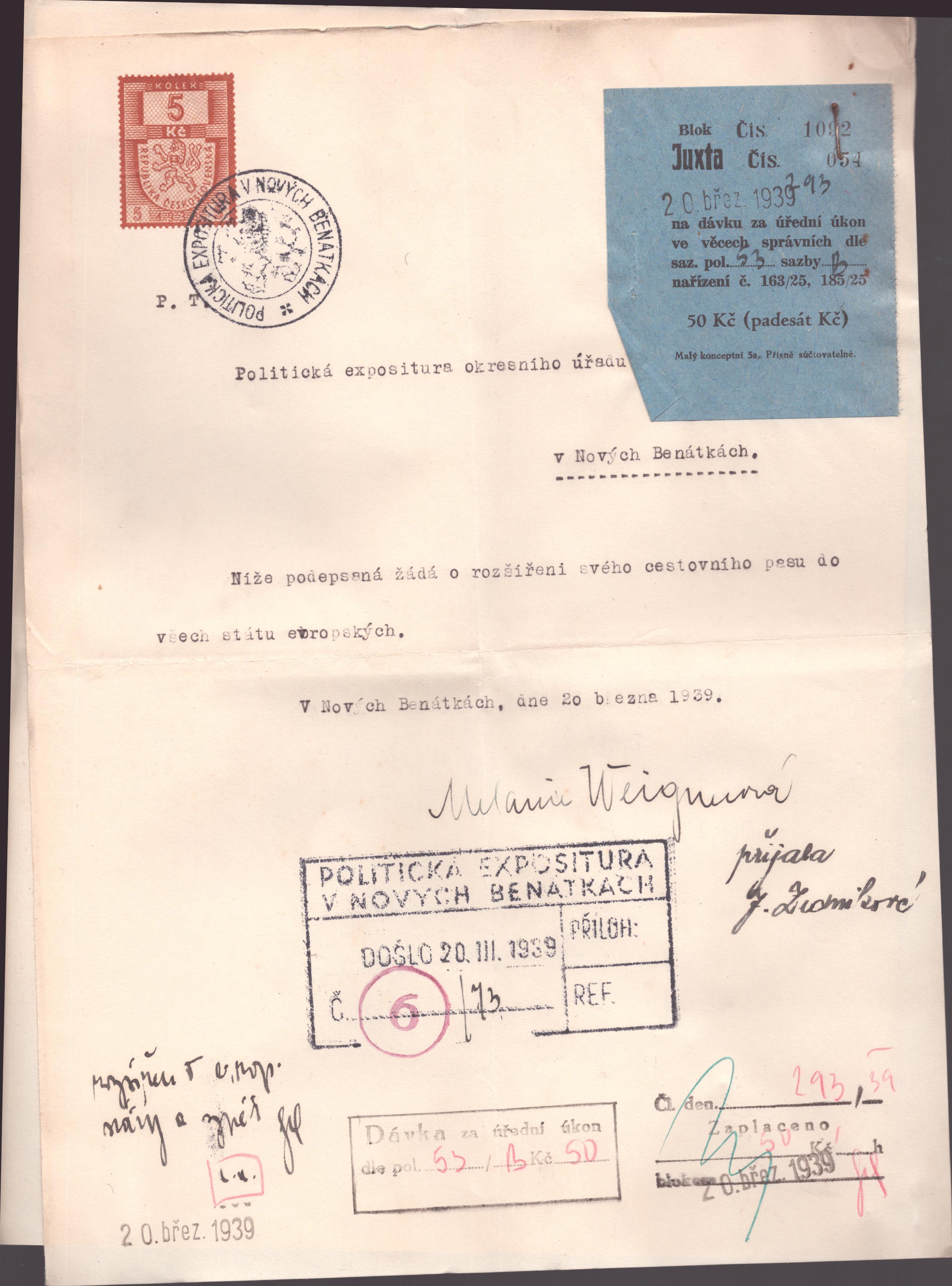 Weignerová Melanie: Žádost o rozšíření cestovního pasu
