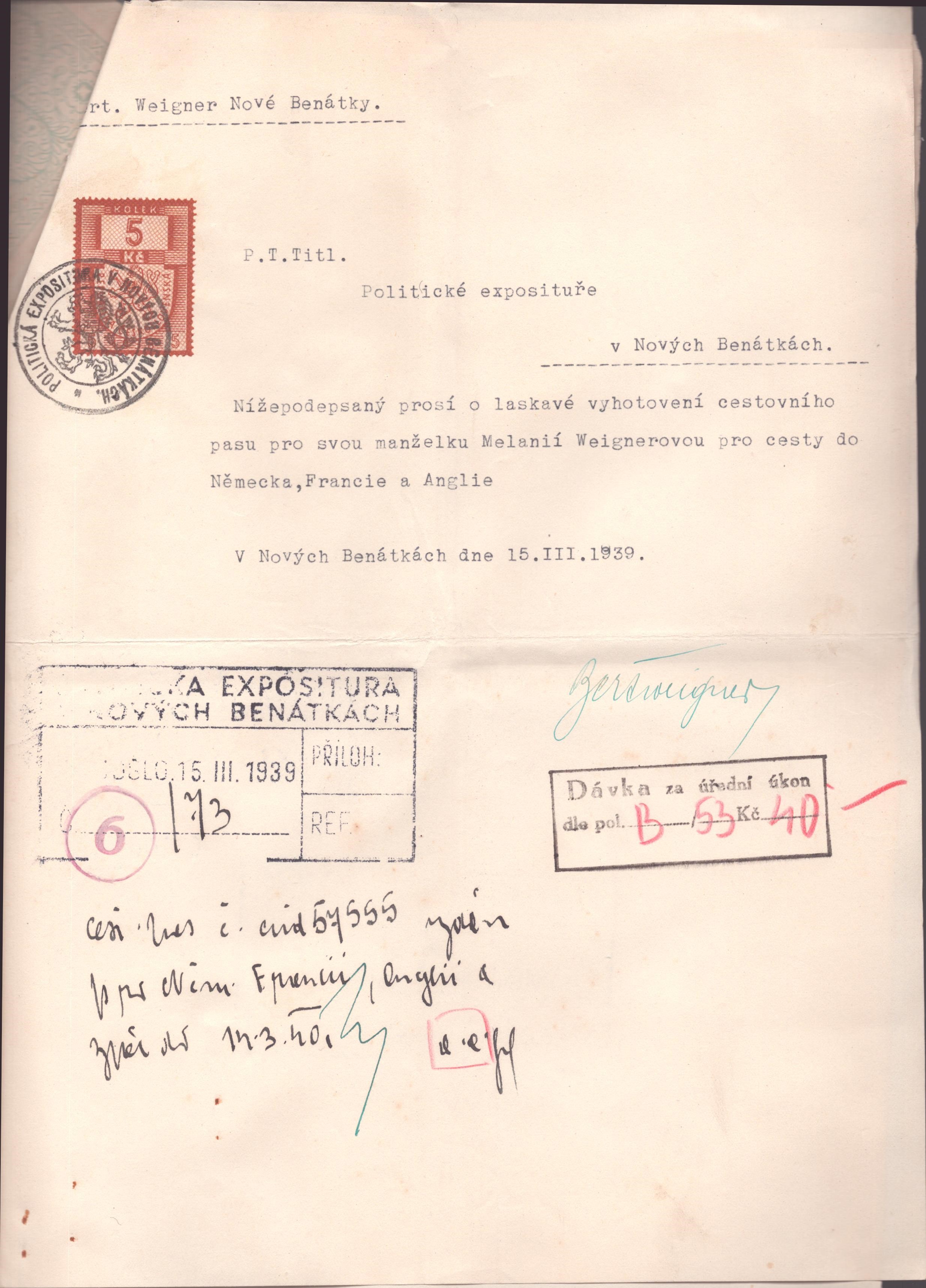 Weignerová Melanie: Žádost o vydání cestovního pasu