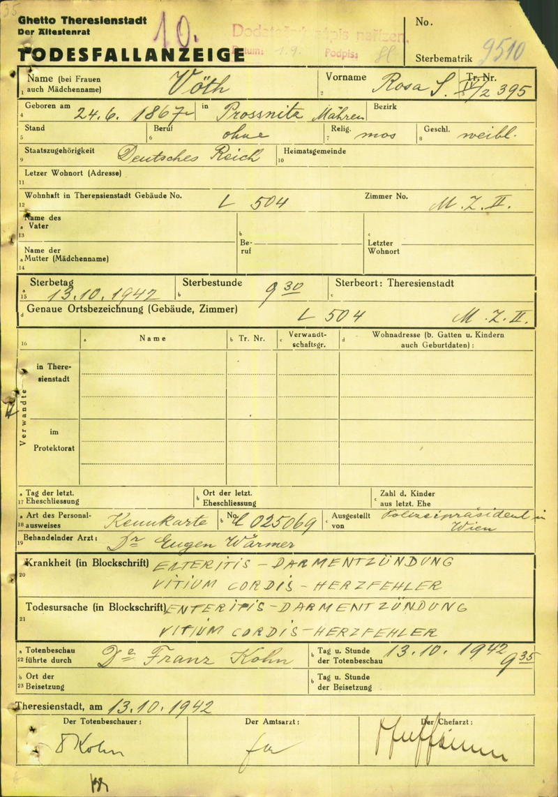 Vöth Rosa: Oznámení o úmrtí, ghetto Terezín