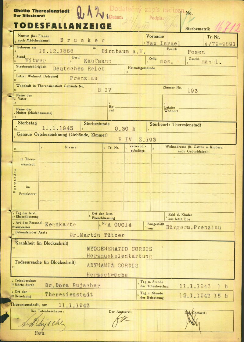 Drucker Max: Oznámení o úmrtí, ghetto Terezín