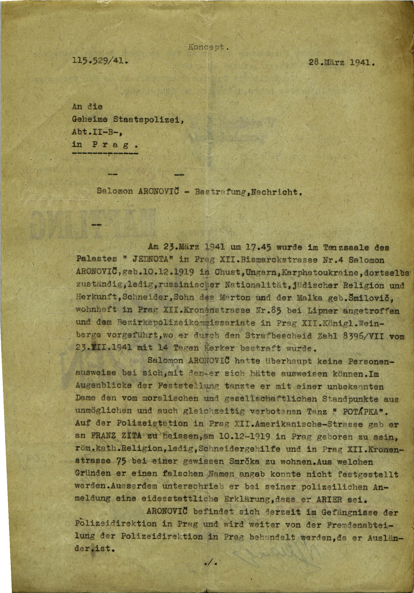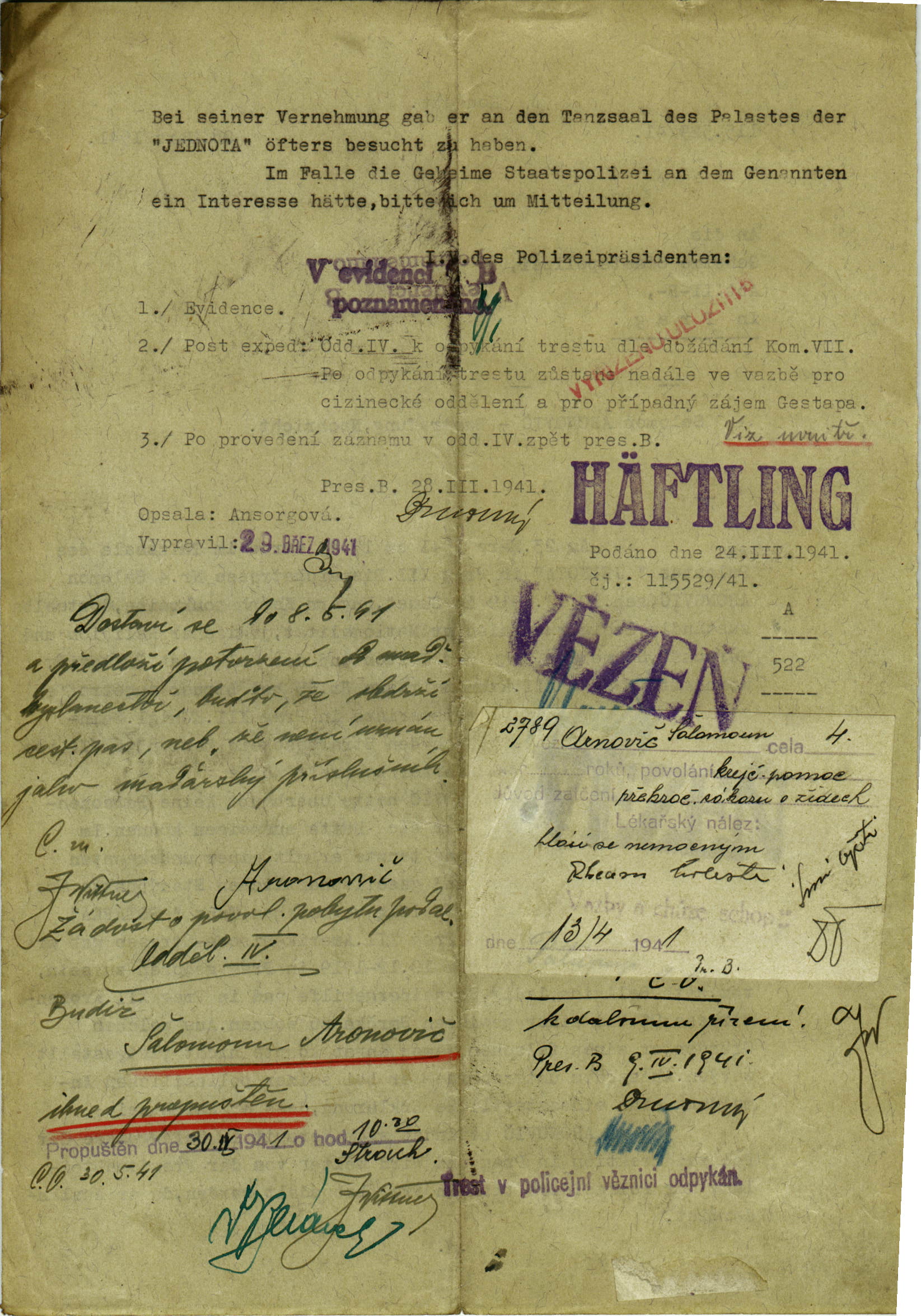 Národní archiv Praha > Policejní ředitelství v Praze > 1941-1950 > A > Aronovič Salomon