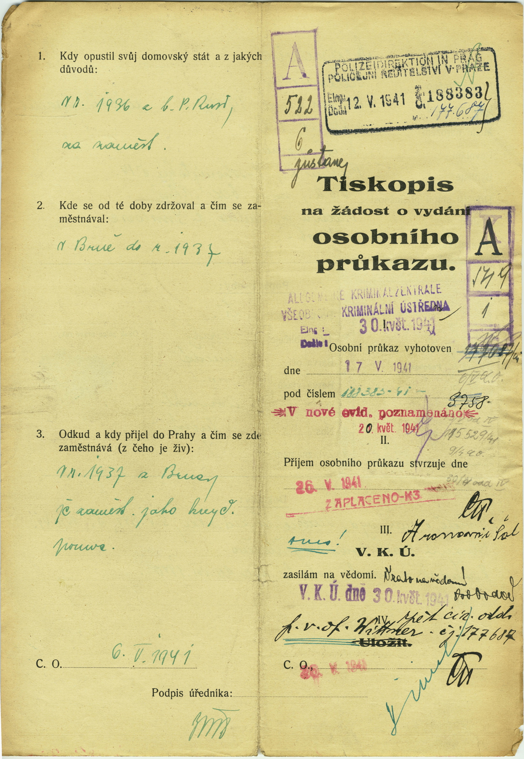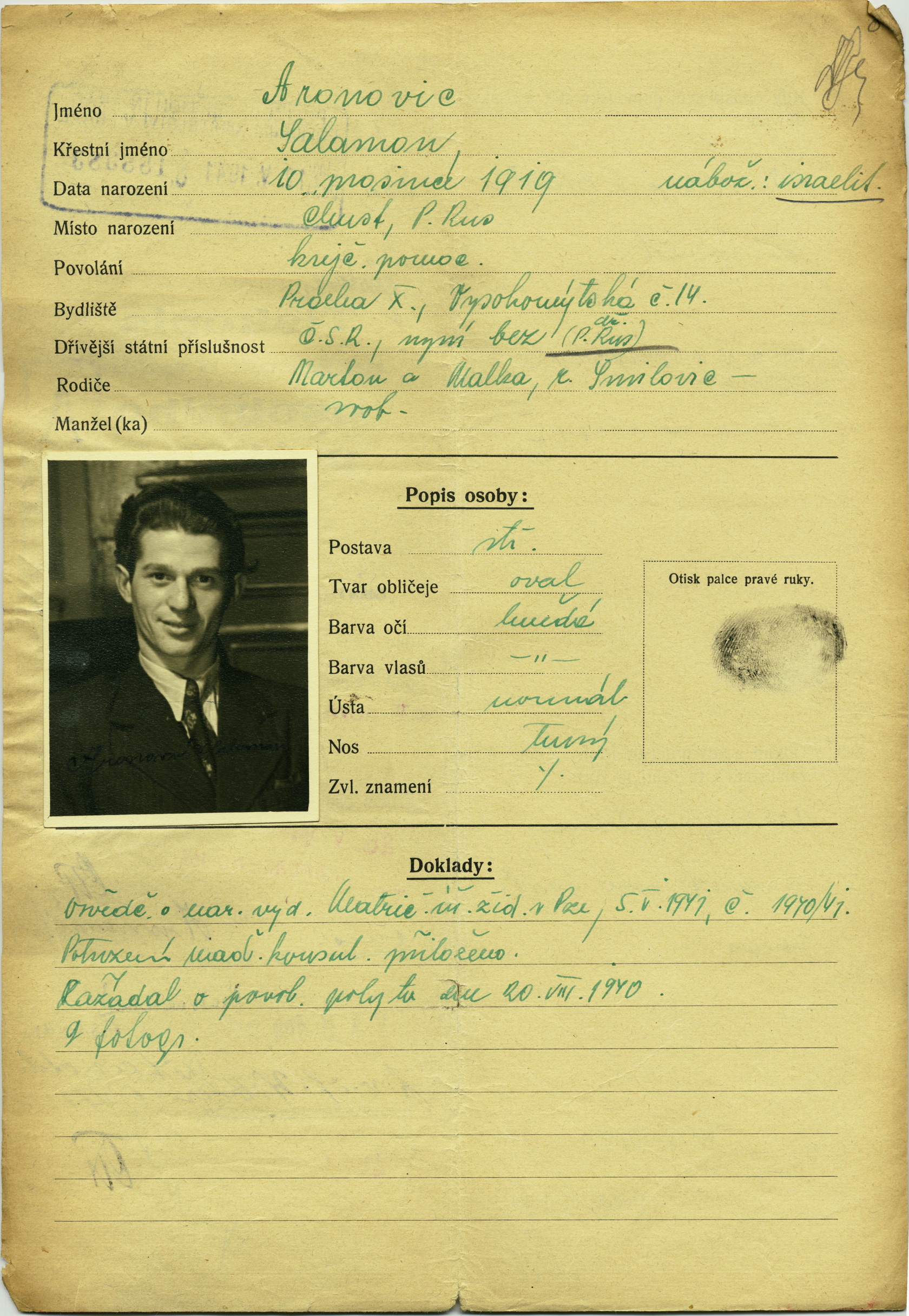 Aronovič Salomon: Žádost o vydání občanské legitimace