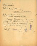 Narozen 27. 08. 1867 Poslední bydliště před deportací: Praha XIII Adresa/místo registrace v Protektorátu: Praha XIII, Hlavní 180 Transport AAq, č. 76 (13. 07. 1942, Praha -> Terezín) Transport Dr, č. 1489 (15. 12. 1943, Terezín -> Osvětim) Zahynul