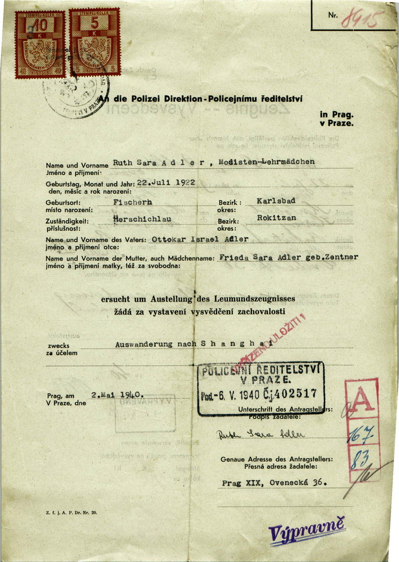 Nationalarchiv Prag > Polizei-Direktion Prag > 1931-1940 > A > Adlerová Ruth