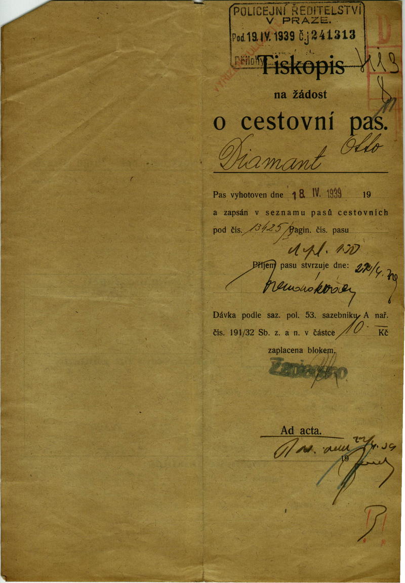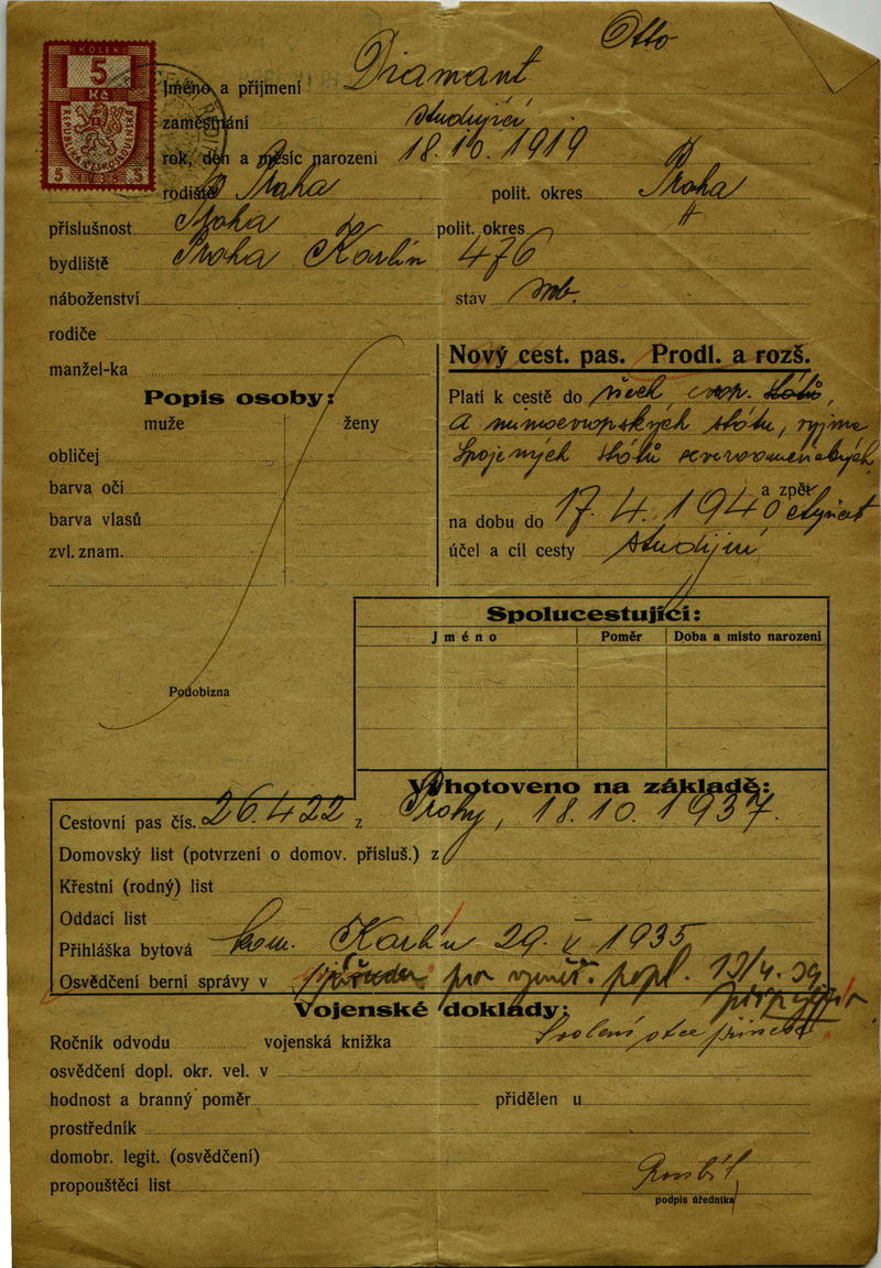 Diamant Otto: Žádost o prodloužení a rozšíření cestovního pasu