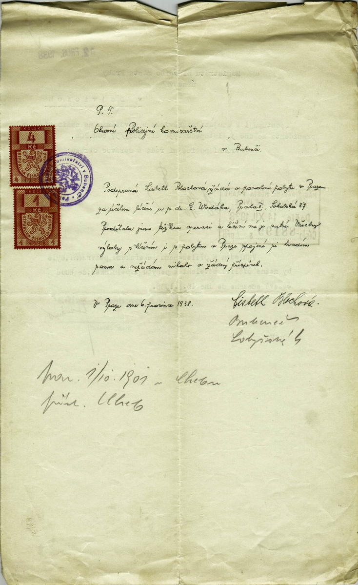 Nationalarchiv Prag > Polizei-Direktion Prag > 1931-1940 > B > Blochová Alžběta