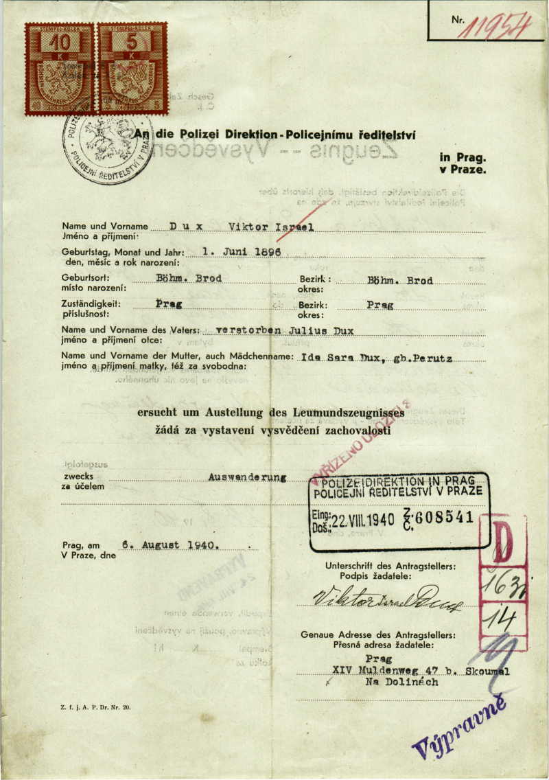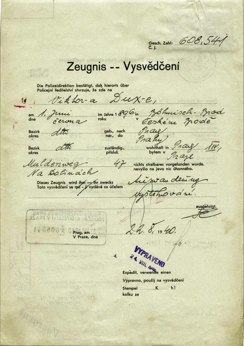 Nationalarchiv Prag > Polizei-Direktion Prag > 1931-1940 > D > Dux Viktor