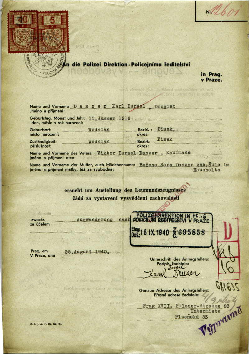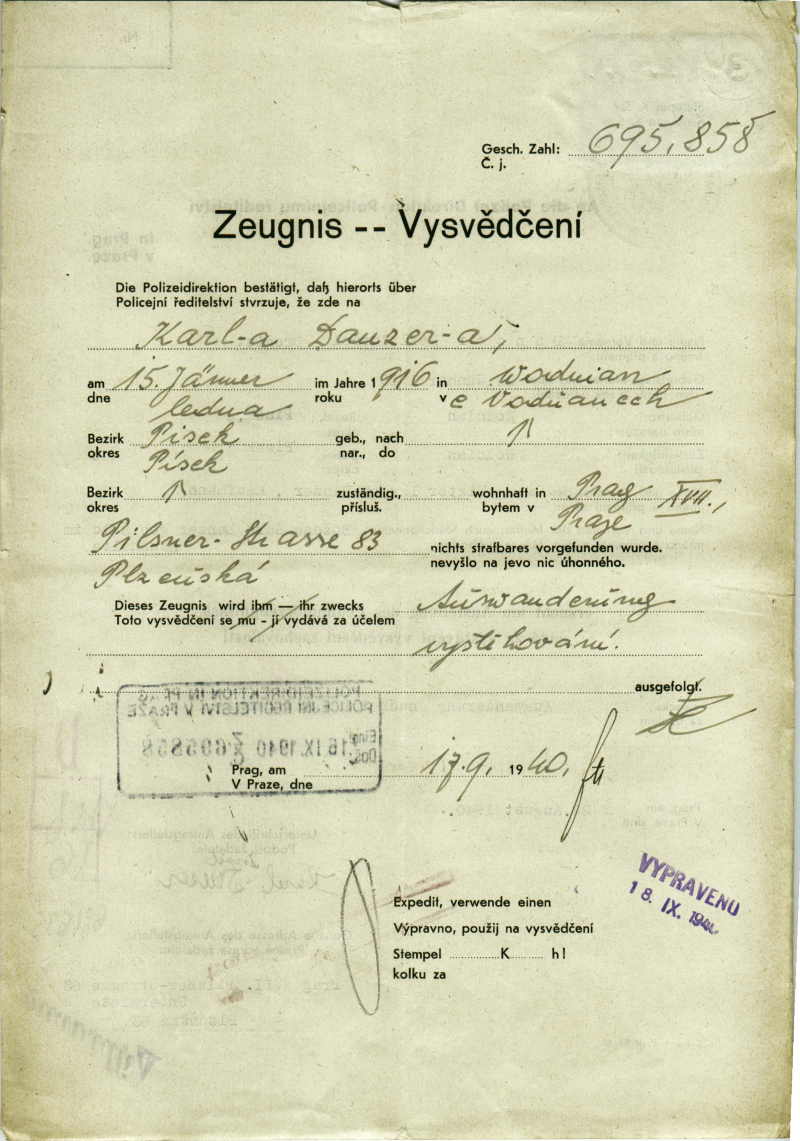 Nationalarchiv Prag > Polizei-Direktion Prag > 1941-1950 > D > Danzer Karel