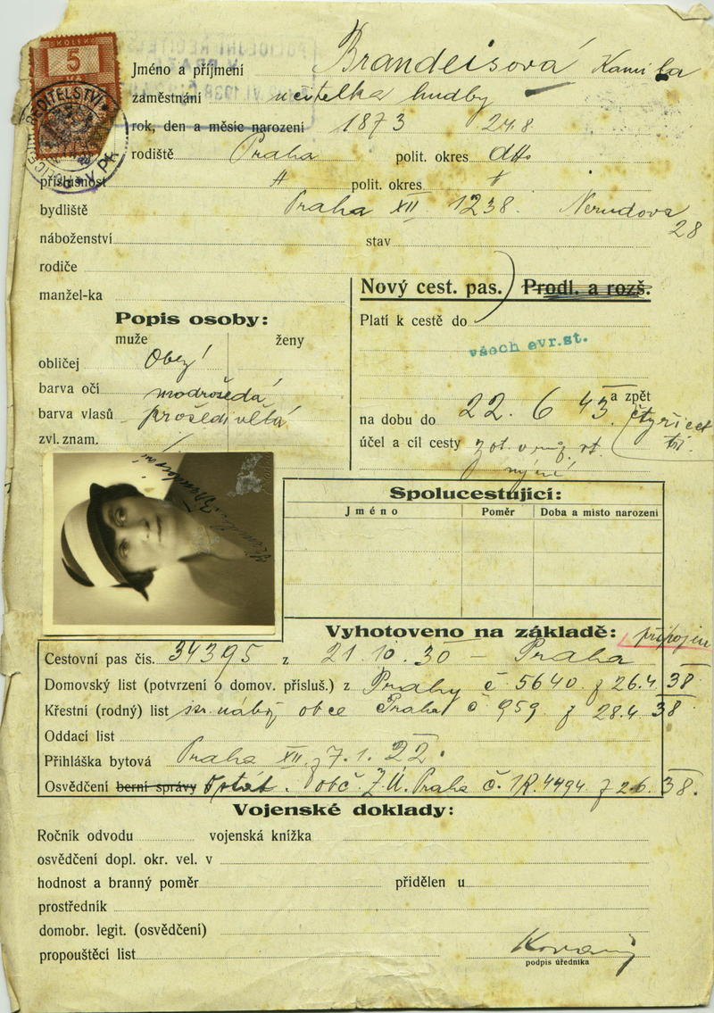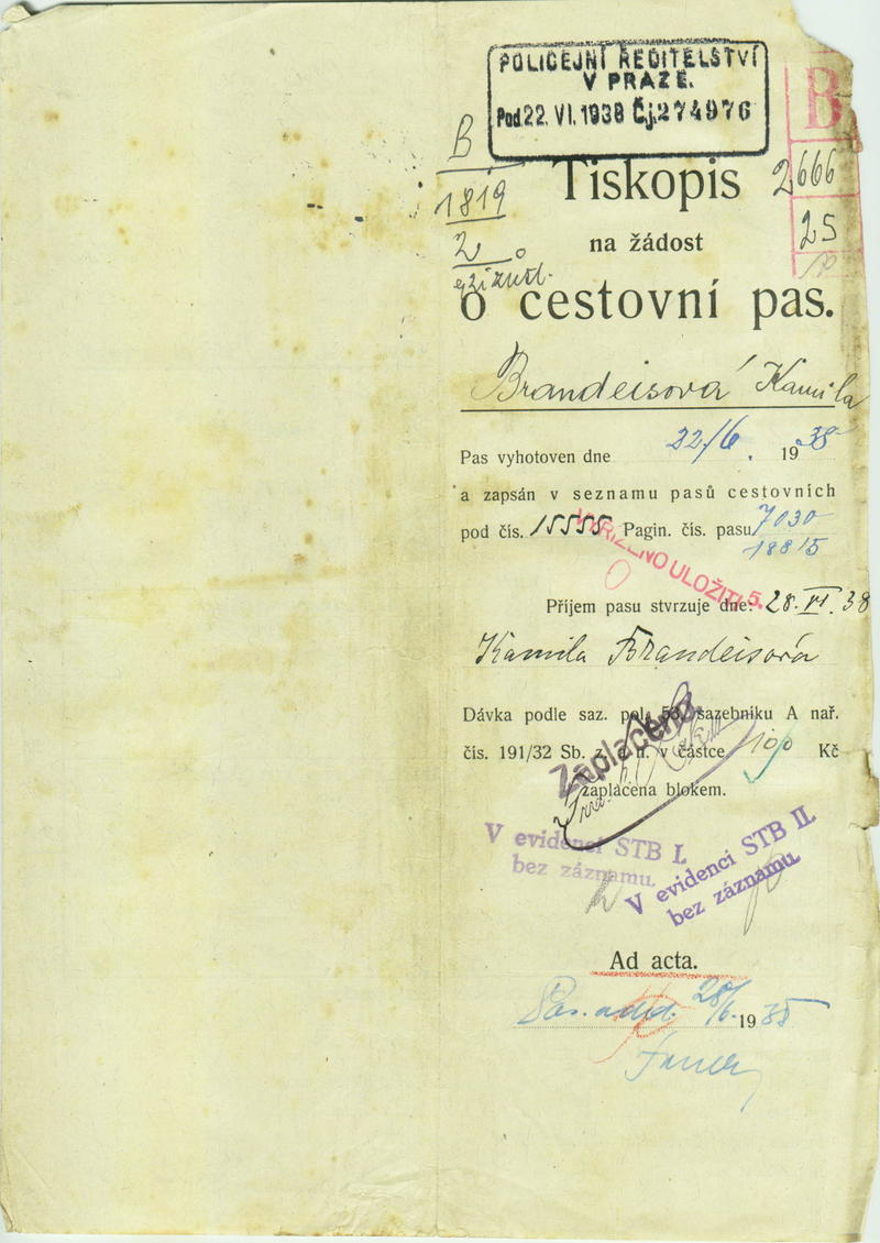Nationalarchiv Prag > Polizei-Direktion Prag > 1931-1940 > B > Brandeisová Kamila