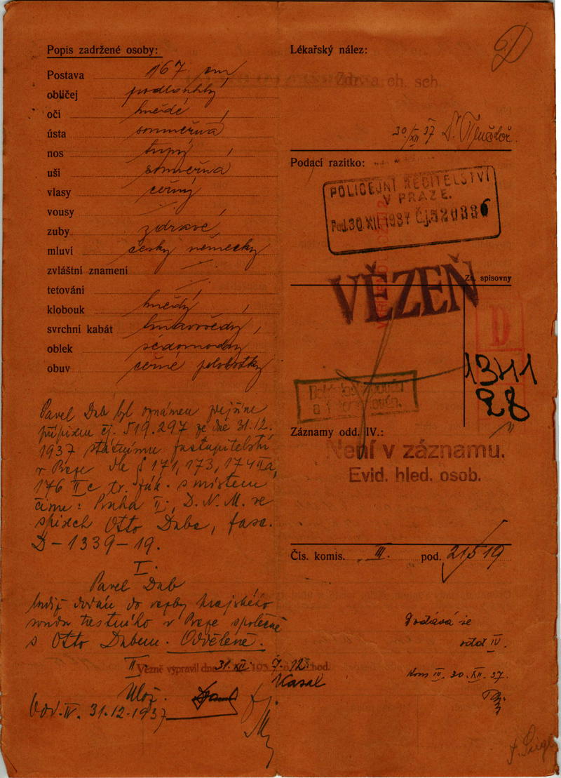 Nationalarchiv Prag > Polizei-Direktion Prag > 1931-1940 > D > Dub Pavel