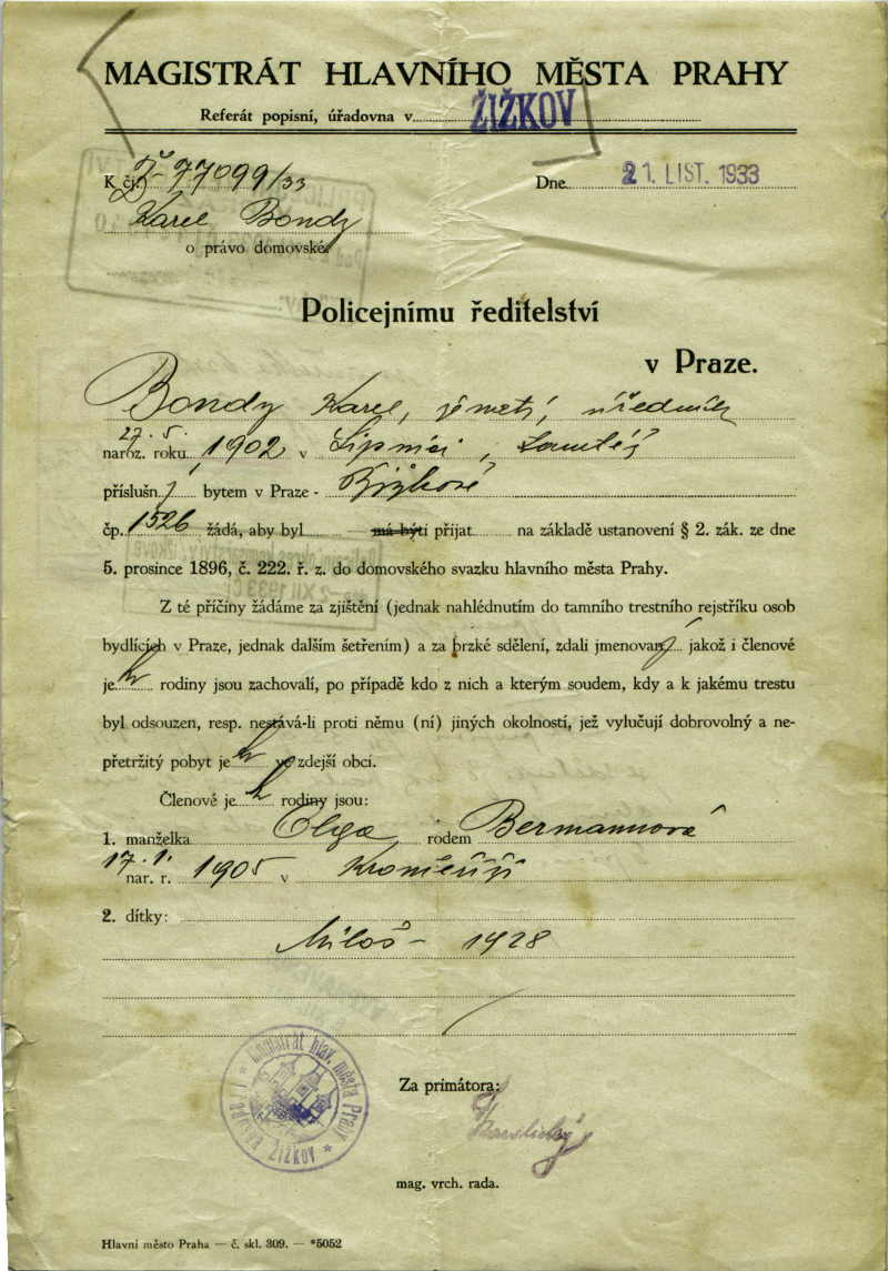 Nationalarchiv Prag > Polizei-Direktion Prag > 1931-1940 > B > Bondy Karel