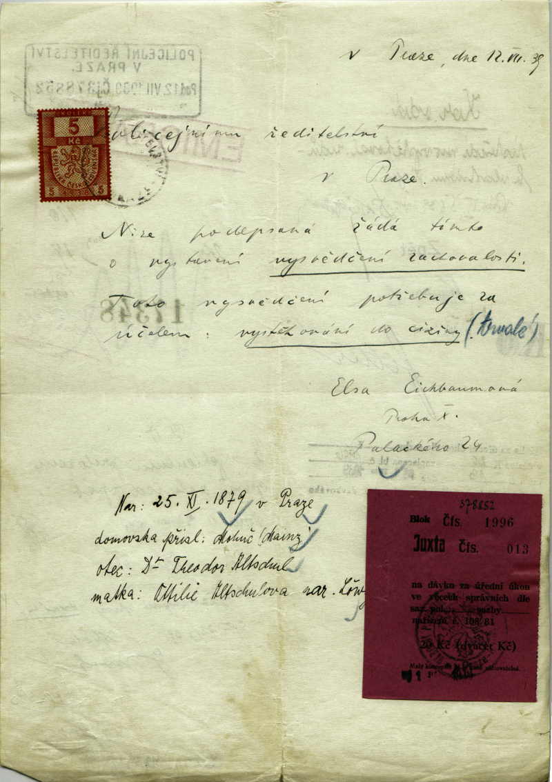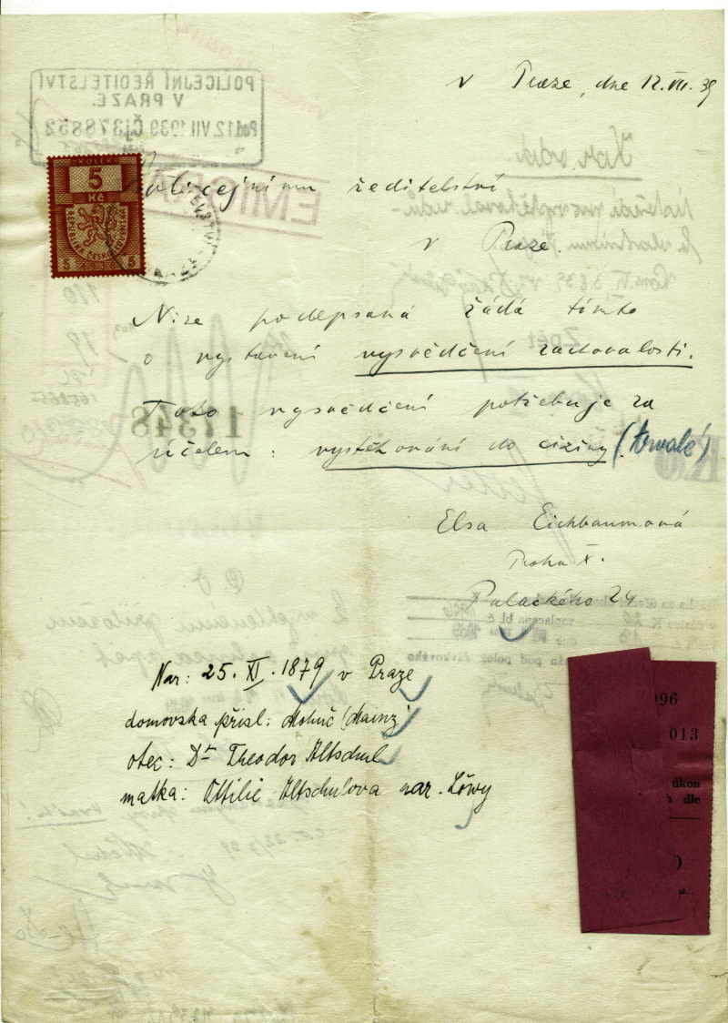 Nationalarchiv Prag > Polizei-Direktion Prag > 1931-1940 > E > Eichbaumová Elsa