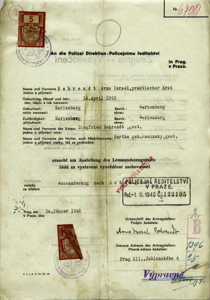 Nationalarchiv Prag > Polizei-Direktion Prag > 1931-1940 > B > Behrendt Arno