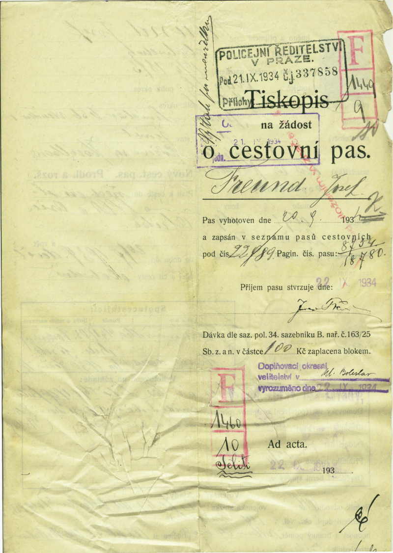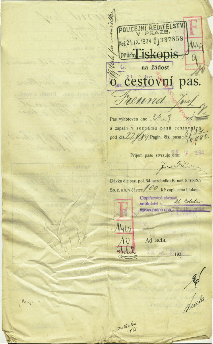Nationalarchiv Prag > Polizei-Direktion Prag > 1931-1940 > F > Freund Josef