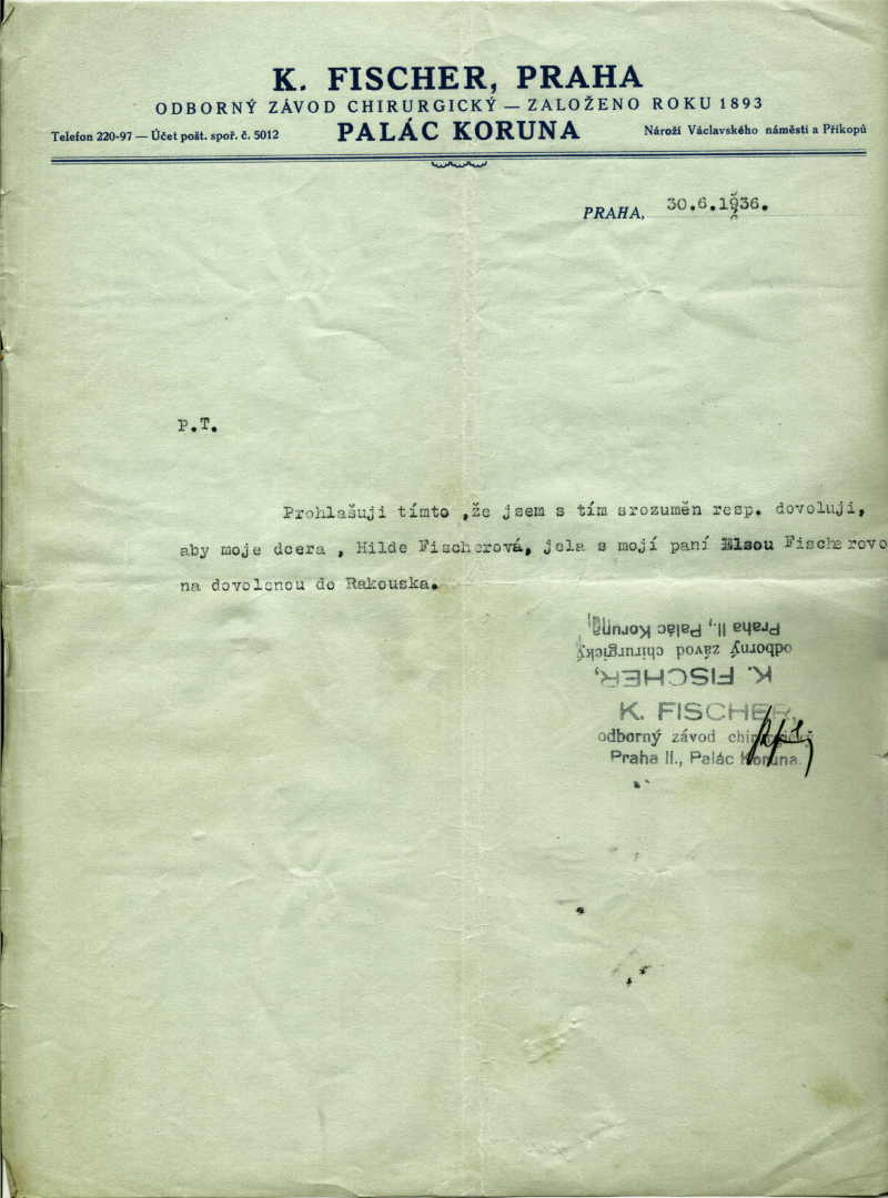 Fischerová Eliška: Vyjádření k žádosti o vydání cestovního pasu