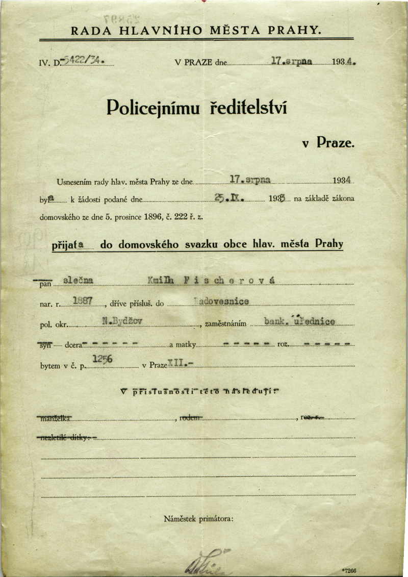 Nationalarchiv Prag > Polizei-Direktion Prag > 1931-1940 > F > Fischerová Kamila