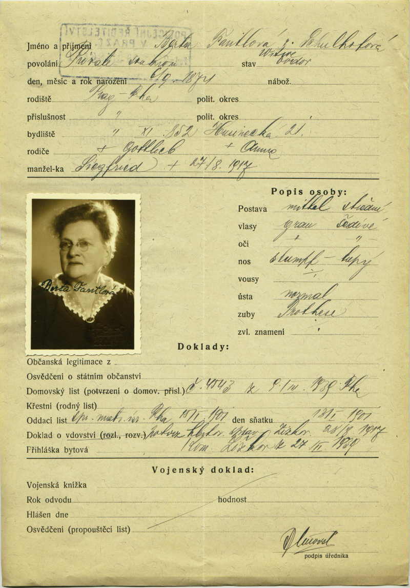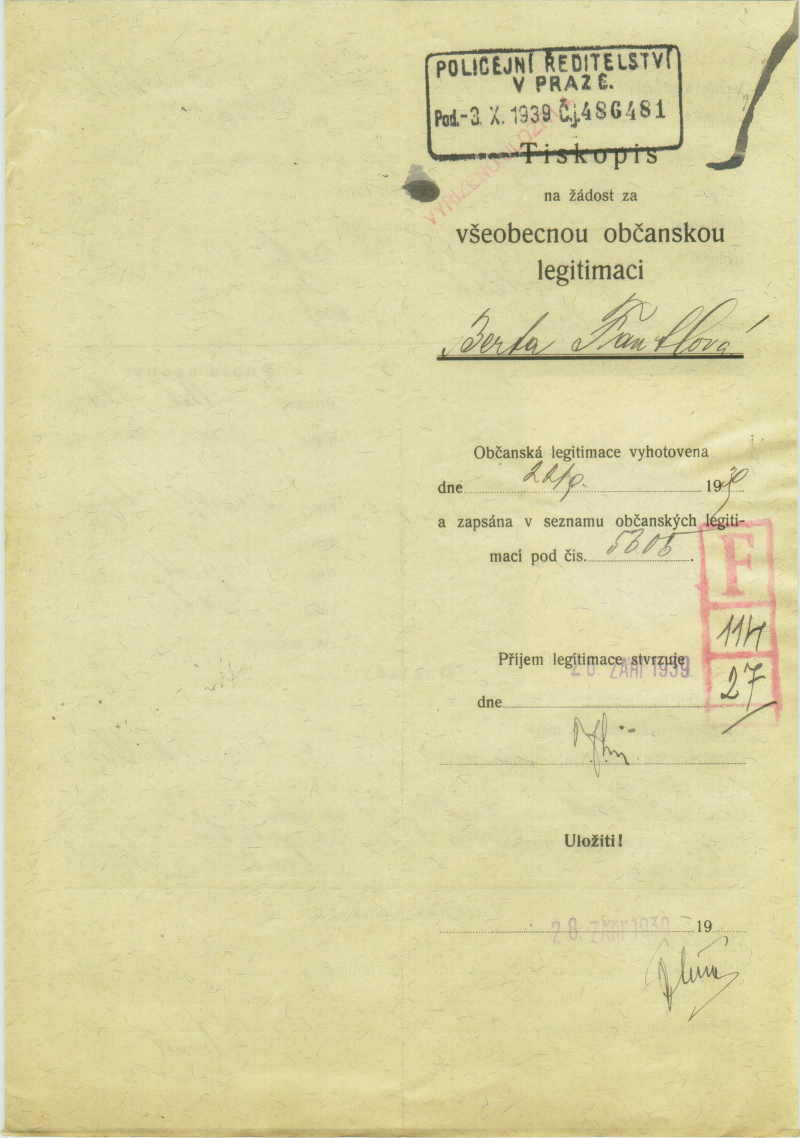 Fantlová Berta: Identity card application