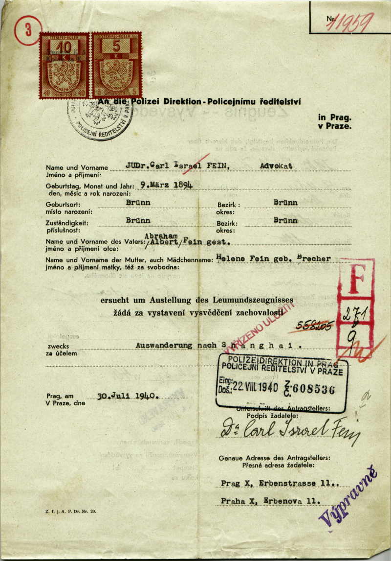 Nationalarchiv Prag > Polizei-Direktion Prag > 1931-1940 > F > Fein Karel