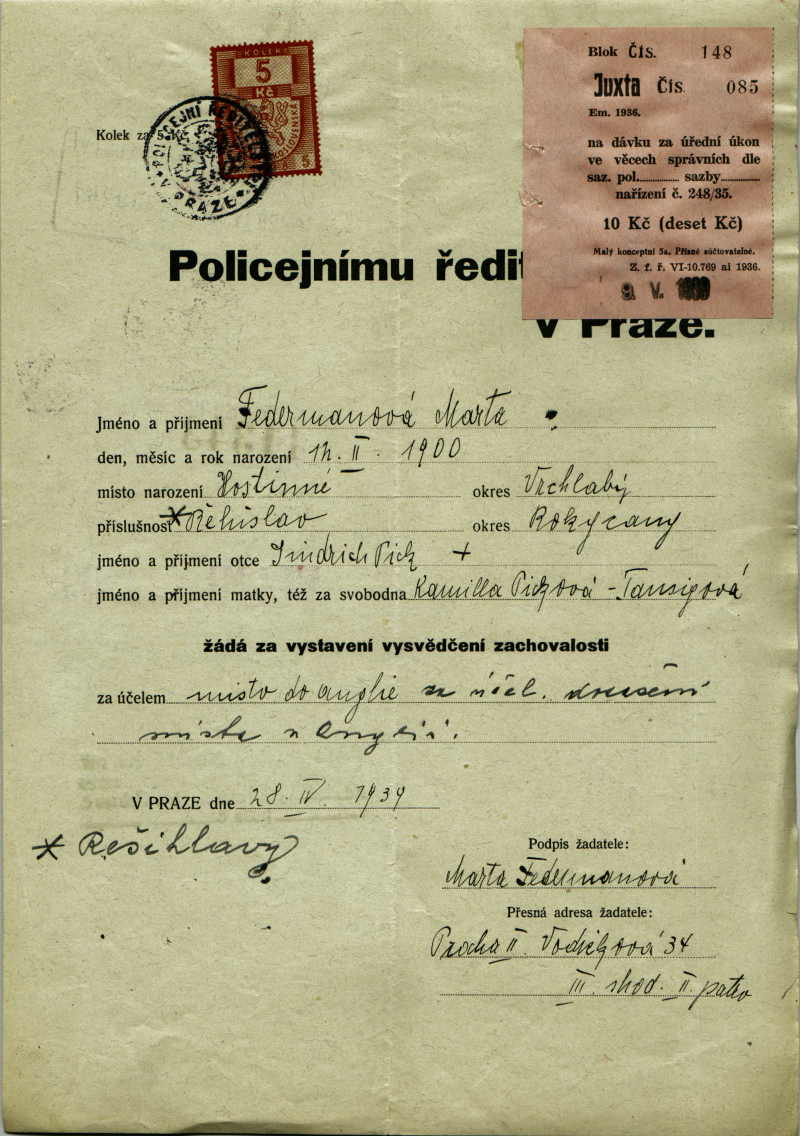 Nationalarchiv Prag > Polizei-Direktion Prag > 1931-1940 > F > Federmannová Marta