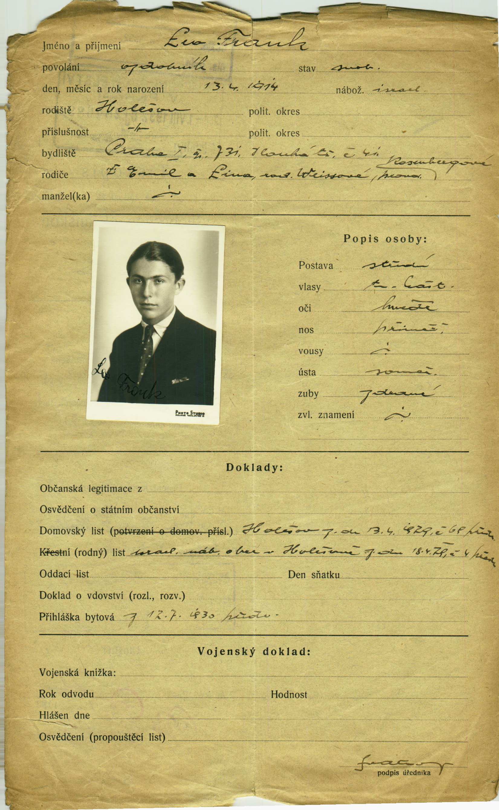 Nationalarchiv Prag > Polizei-Direktion Prag > 1941-1950 > F > Frank Leo