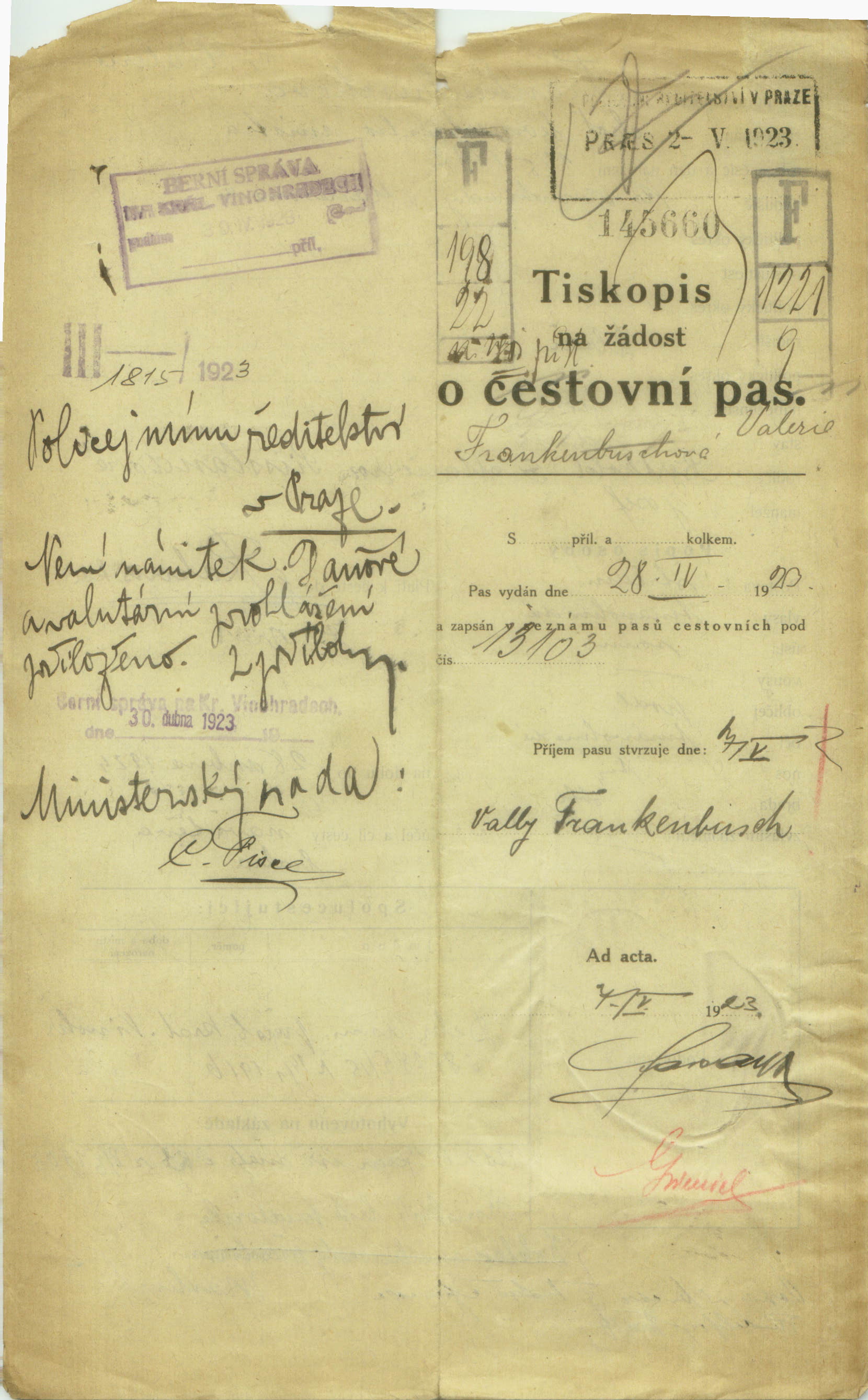 Frankenbuschová Valerie: Passport application