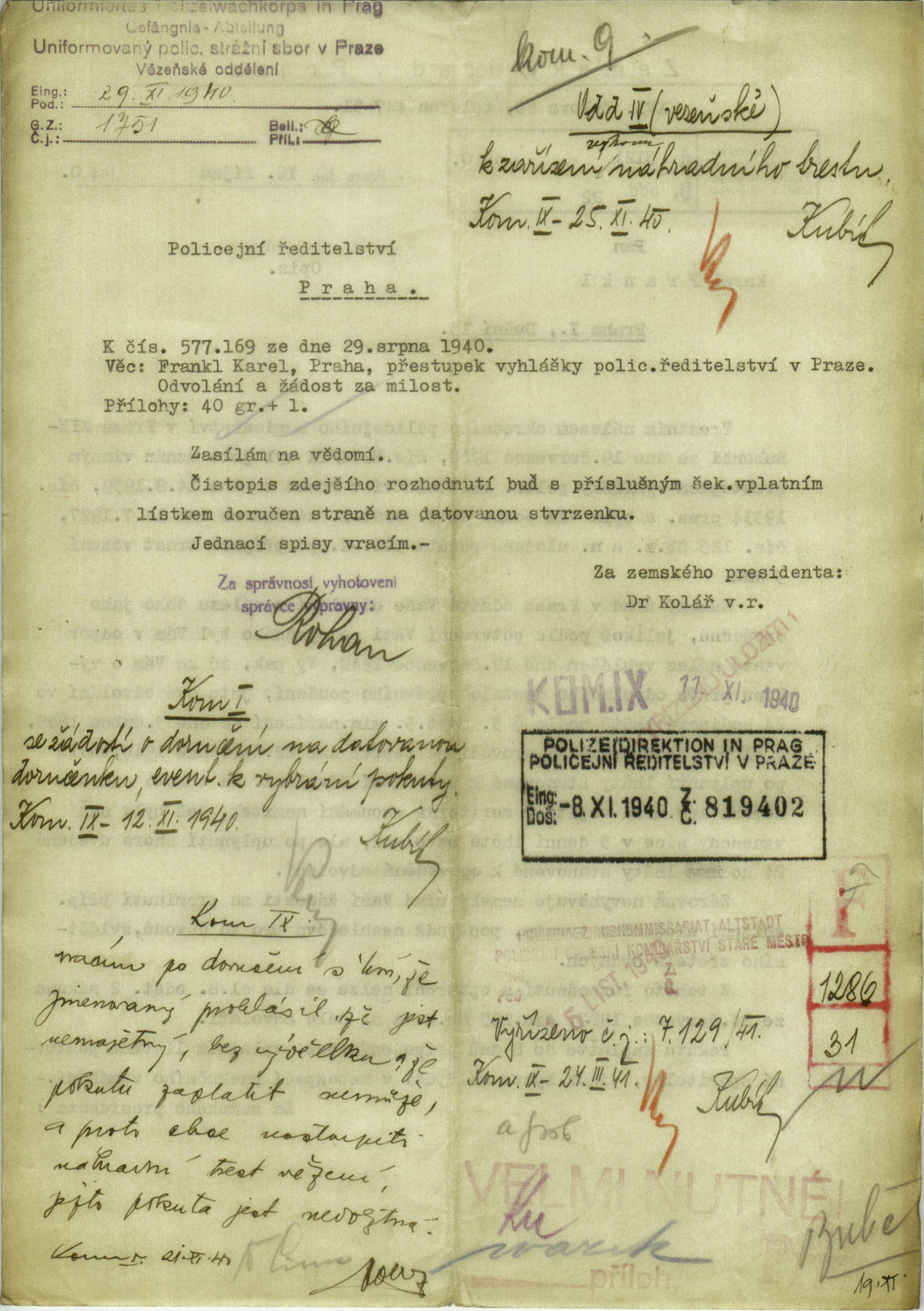Nationalarchiv Prag > Polizei-Direktion Prag > 1941-1950 > F > Frankl Karel